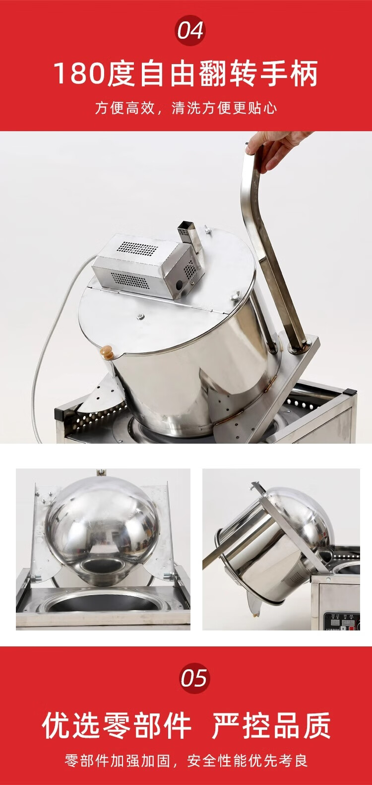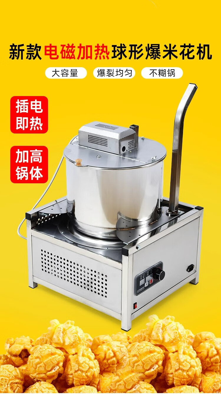 Dekebang American-style corn kernel large commercial electromagnetic heating spherical popcorn machine fully automatic multi-functional corn kernel machine gas electric heating model (requires 220v power supply)