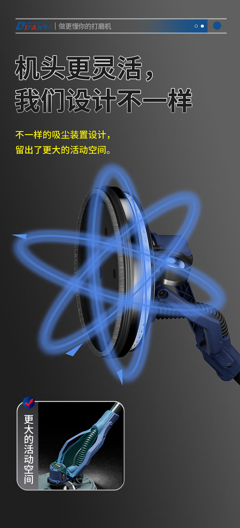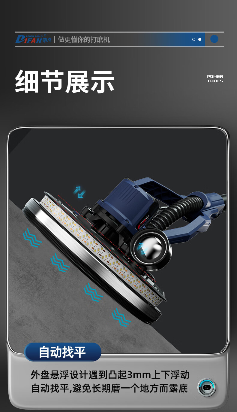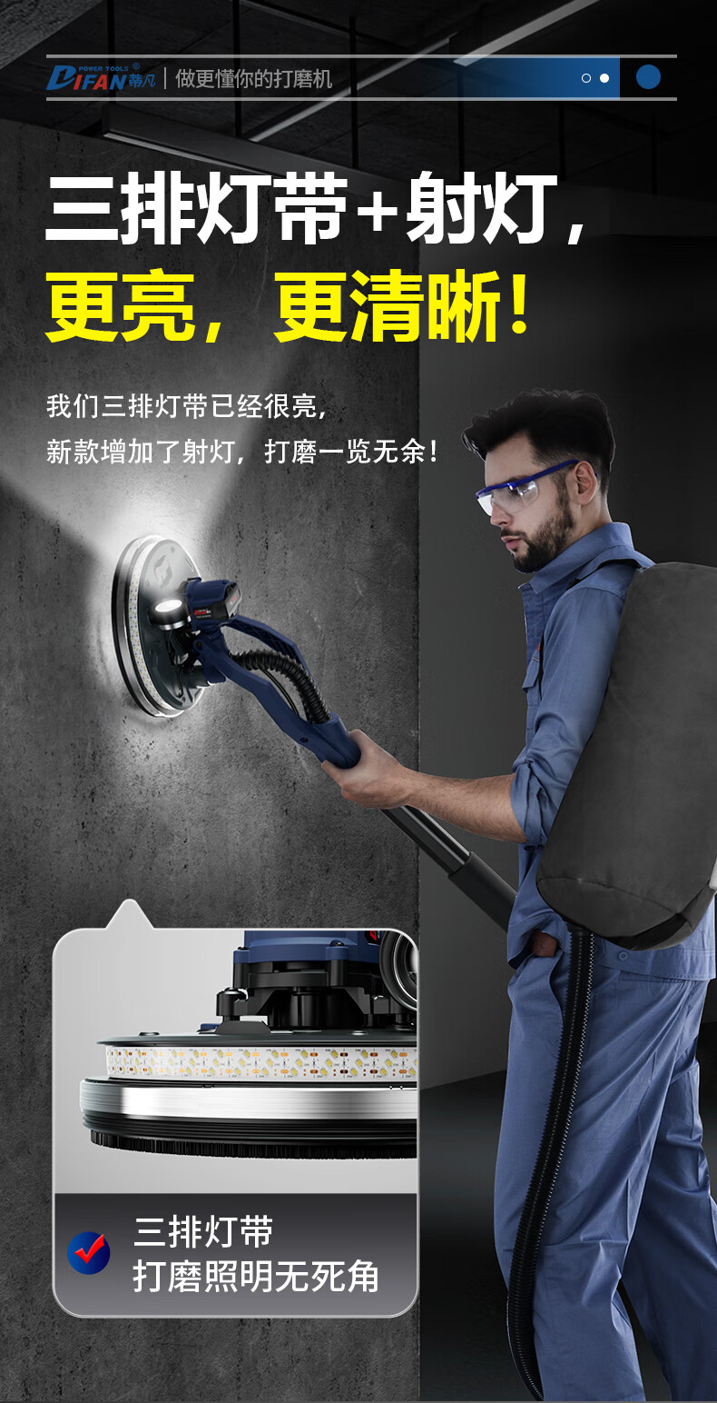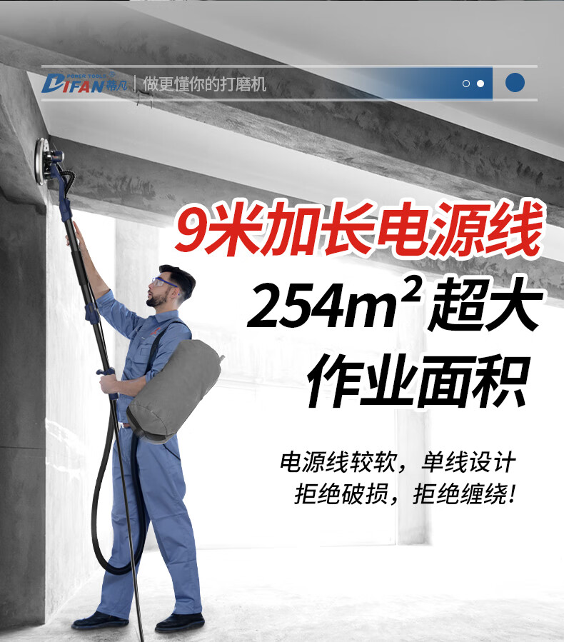 Tiffan's new brushless wall grinder, ceiling sandpaper machine, wall grinder, putty wall grinder, wall sander, sanding machine 2025 2-meter backpack model + suction fan + 50 sandpaper (net weight 2.2kg)