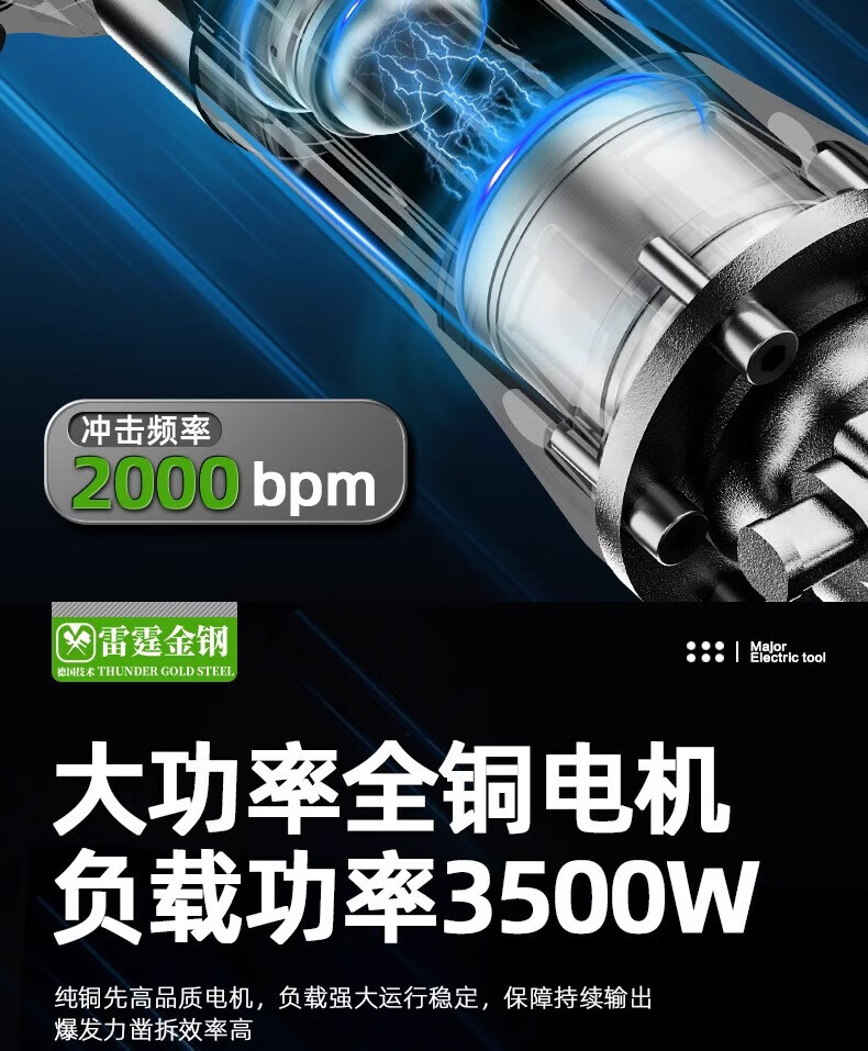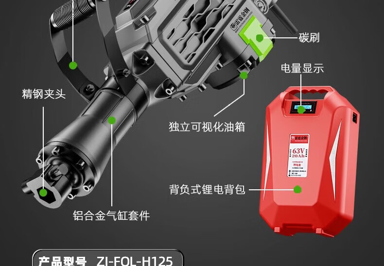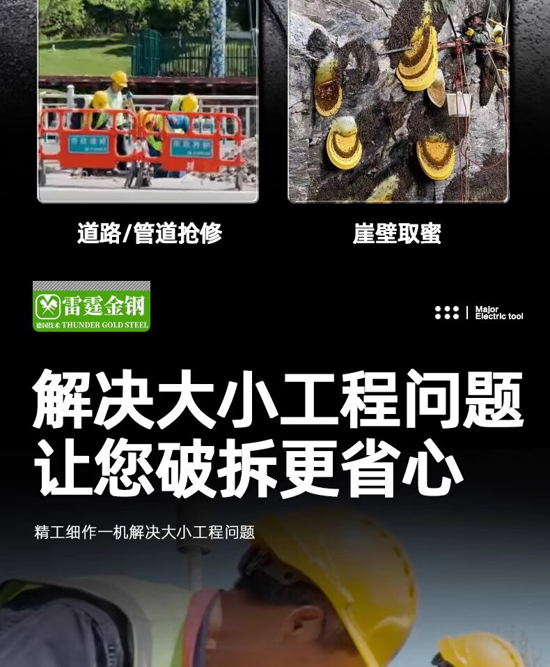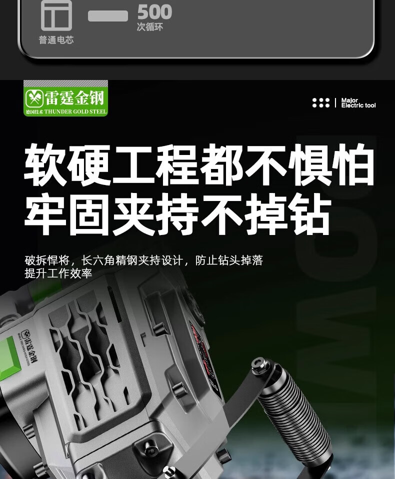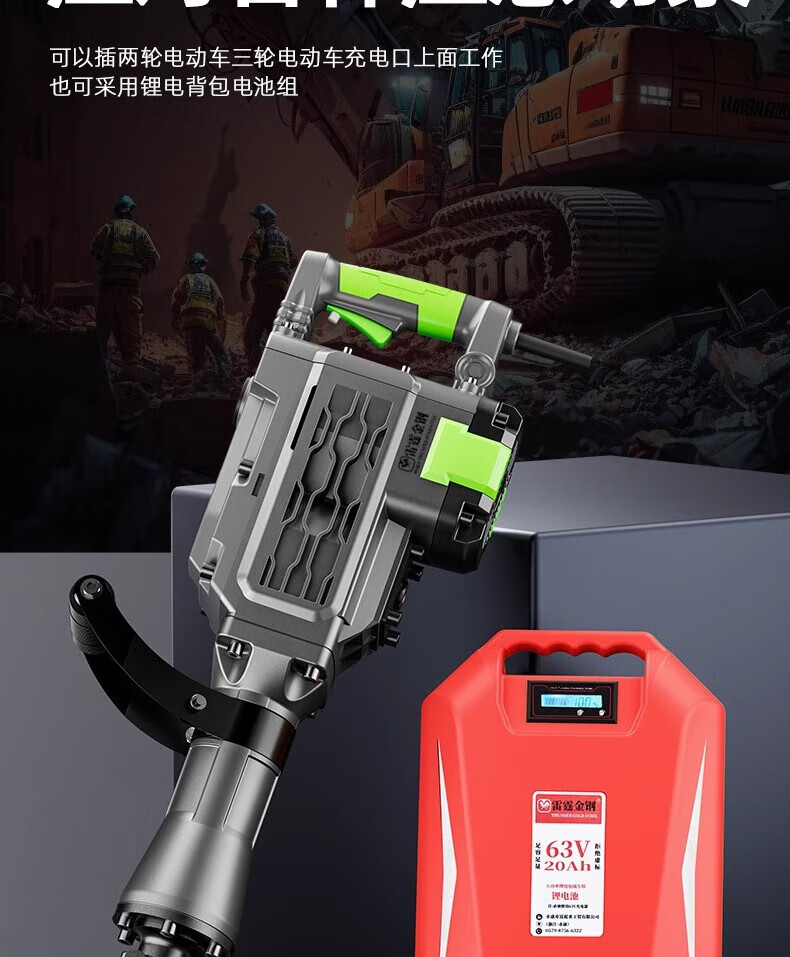Thunder King Steel lithium battery industrial grade high-power high-power electric pick rechargeable electric pick emergency construction lithium electric rock drill demolition hammer rescue 48V-30AH indirect work 7 hours continuous work 3.5h