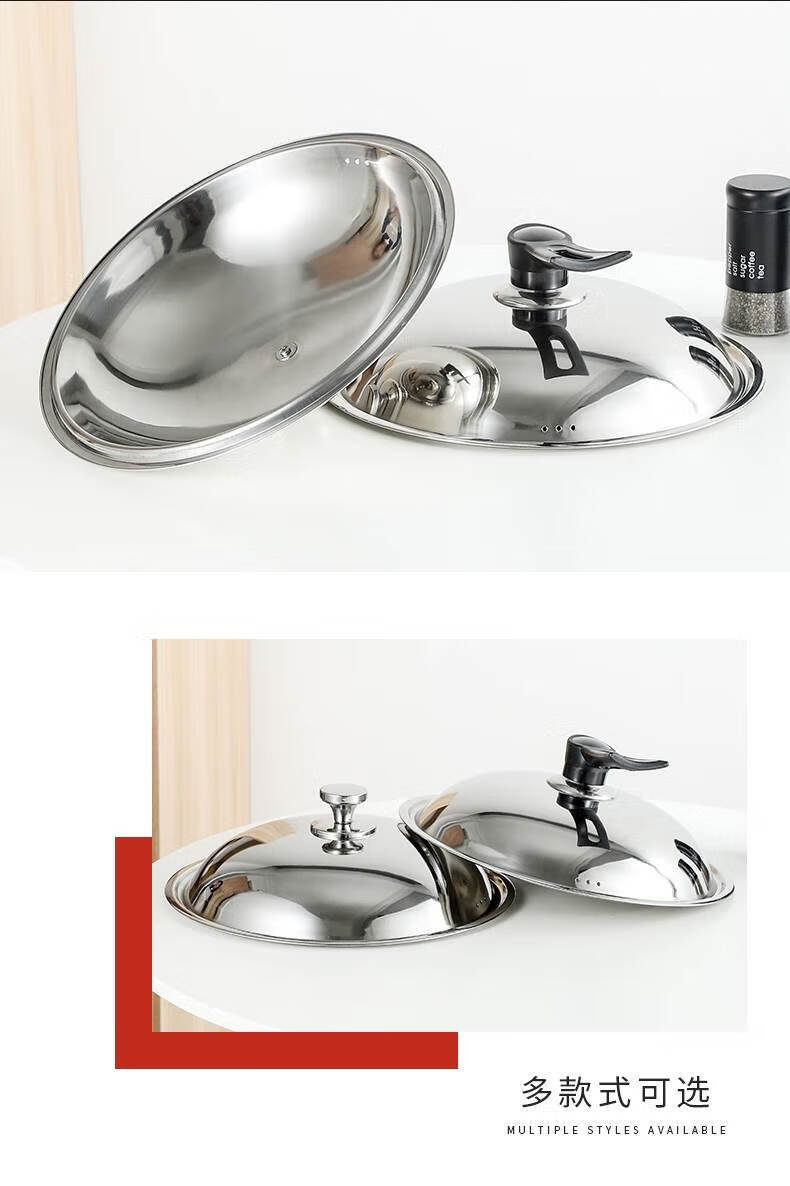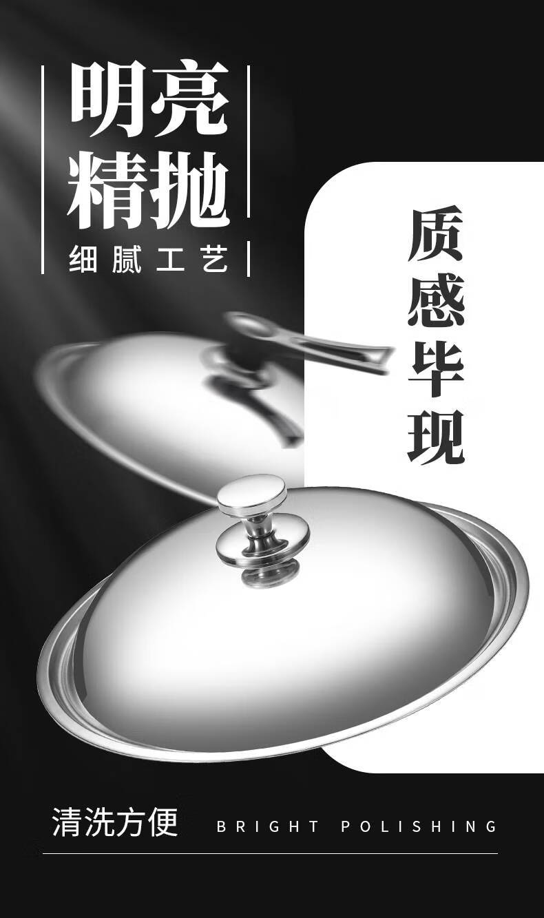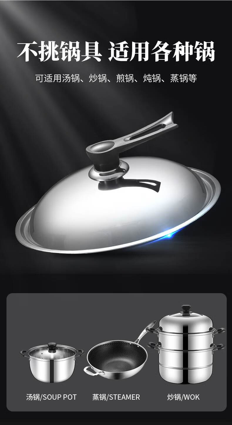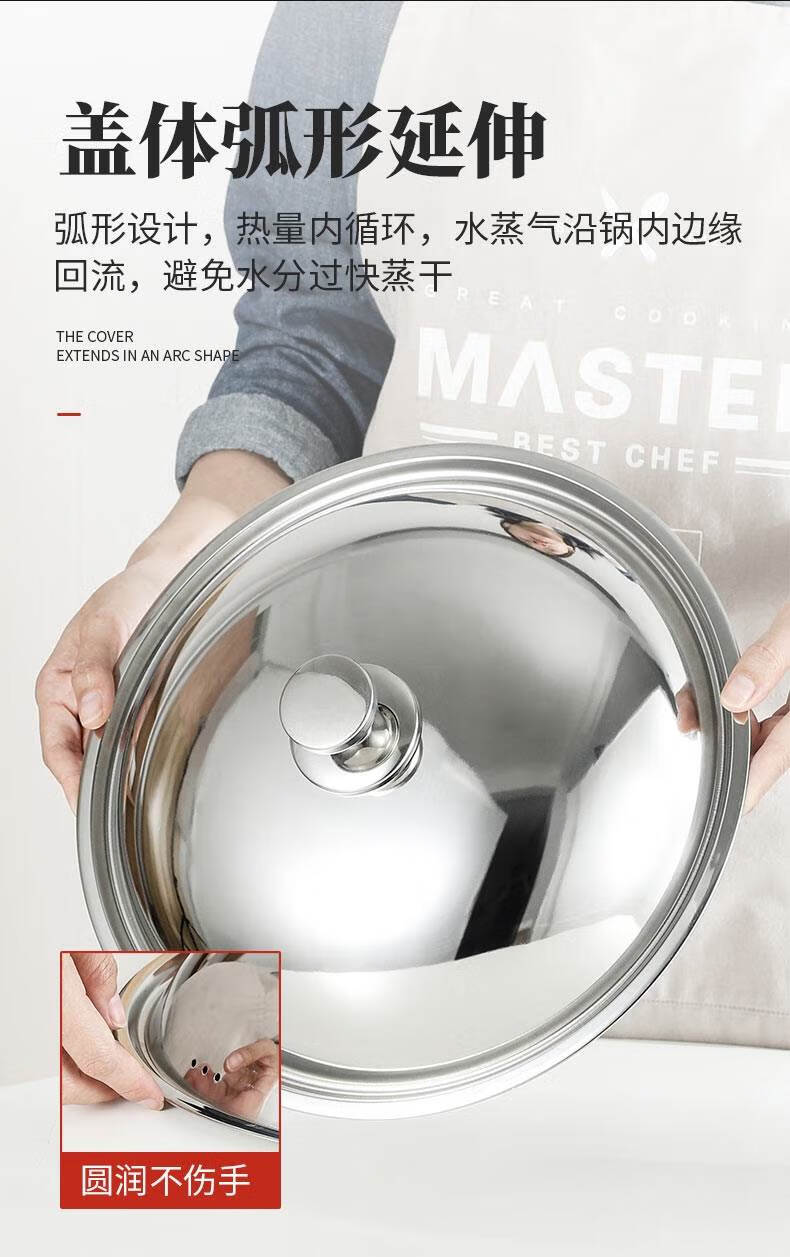 Baishengniu stainless steel pot lid 304 food grade all steel thickened stainless steel pot lid household wok lid 30cm3 all steel pure steel handle 32cm