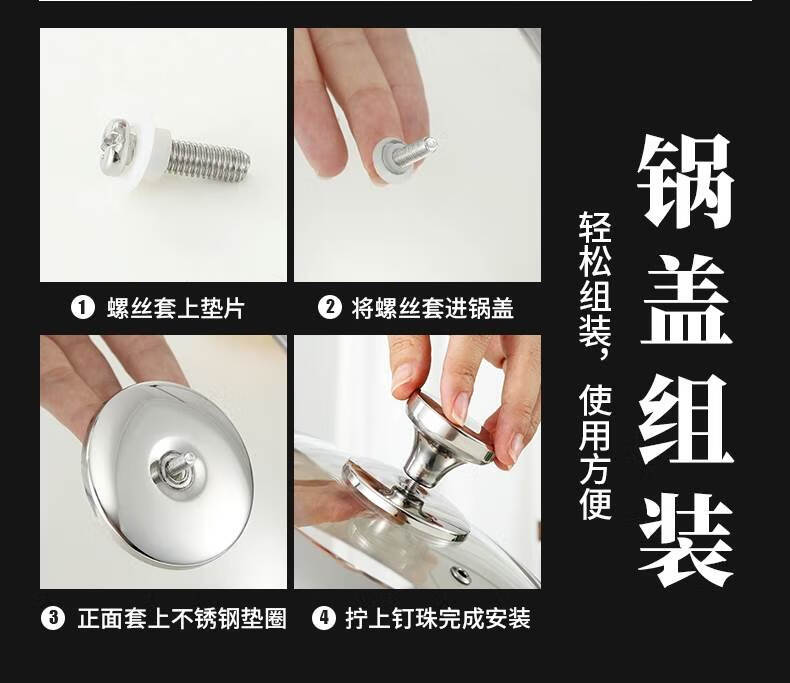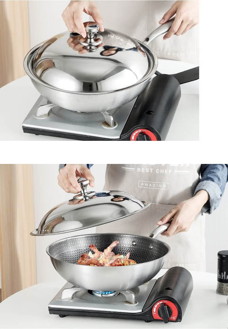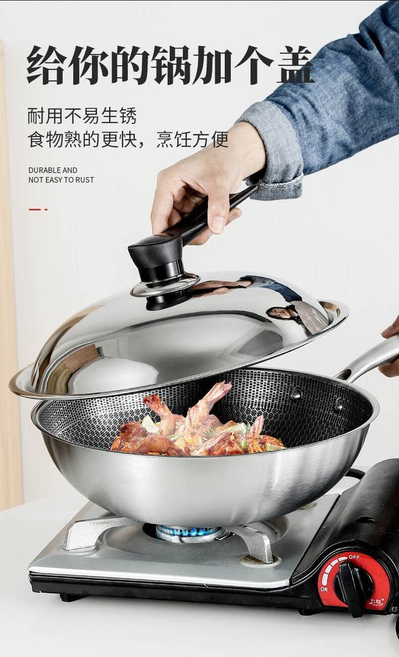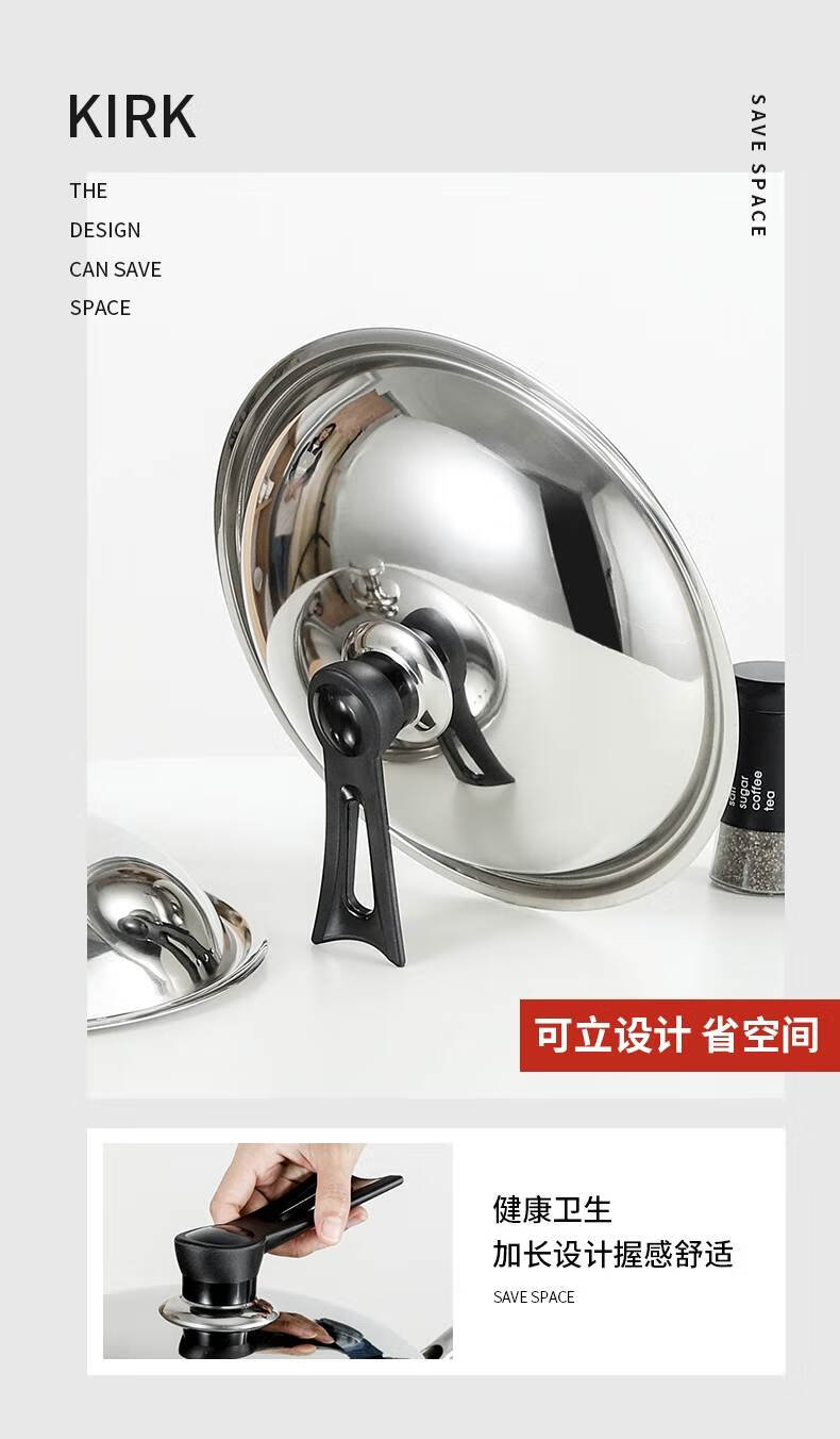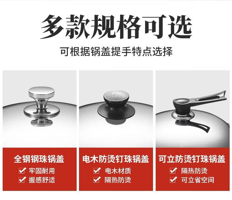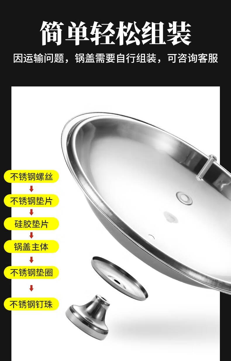 Baishengniu stainless steel pot lid 304 food grade all steel thickened stainless steel pot lid household wok lid 30cm3 all steel pure steel handle 32cm