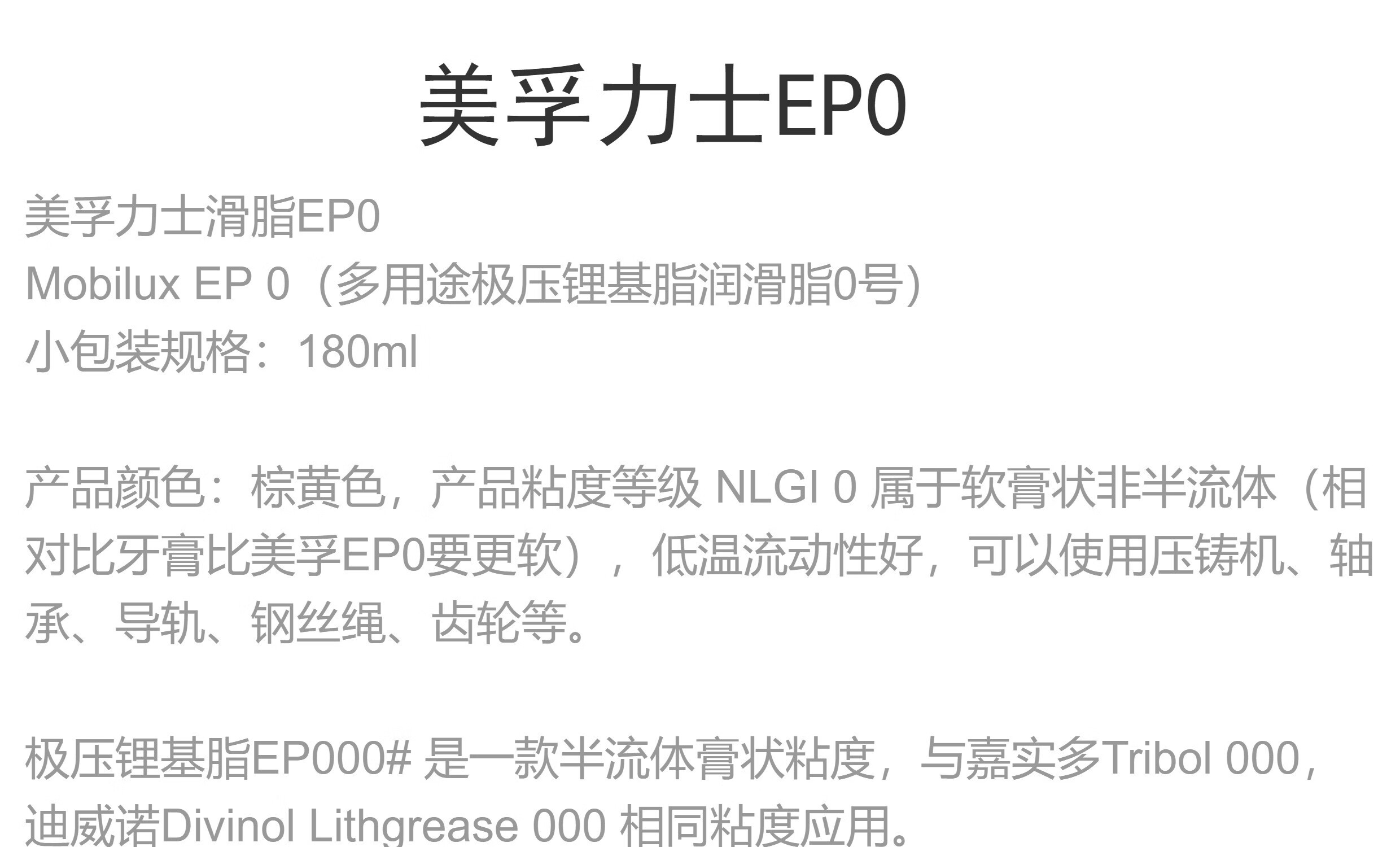 Grease EP0 No. butter gear guide rail wire rope extreme pressure lithium-based grease waterproof and anti-rust Mobil EP0-500ml yellow No. 0 paste