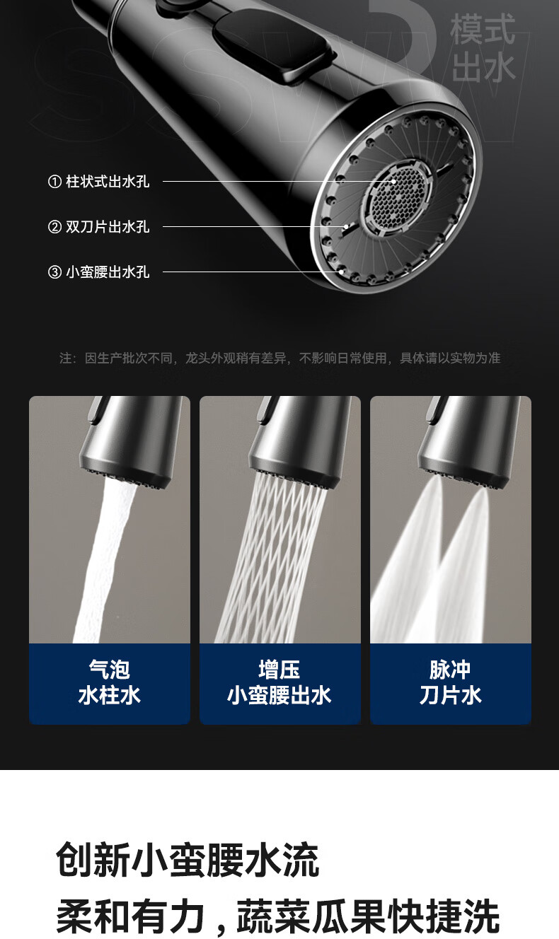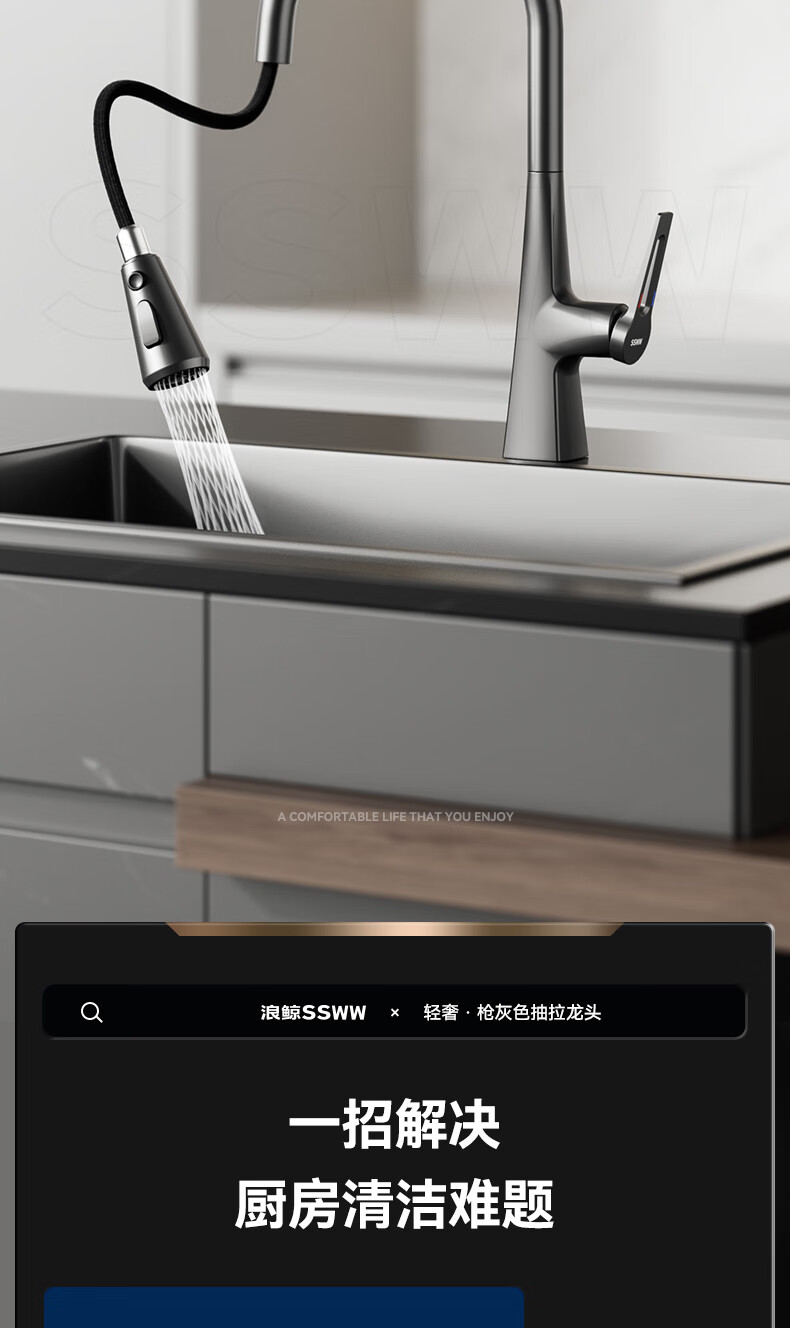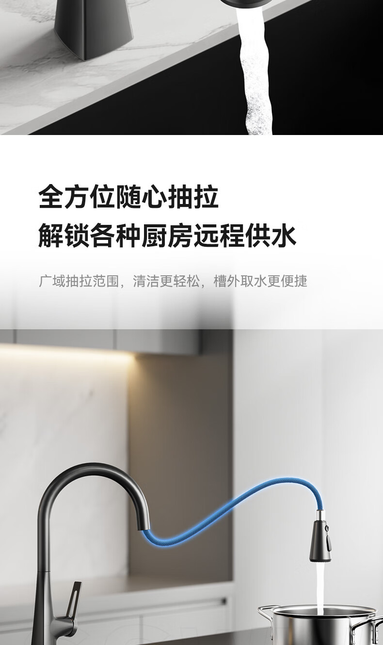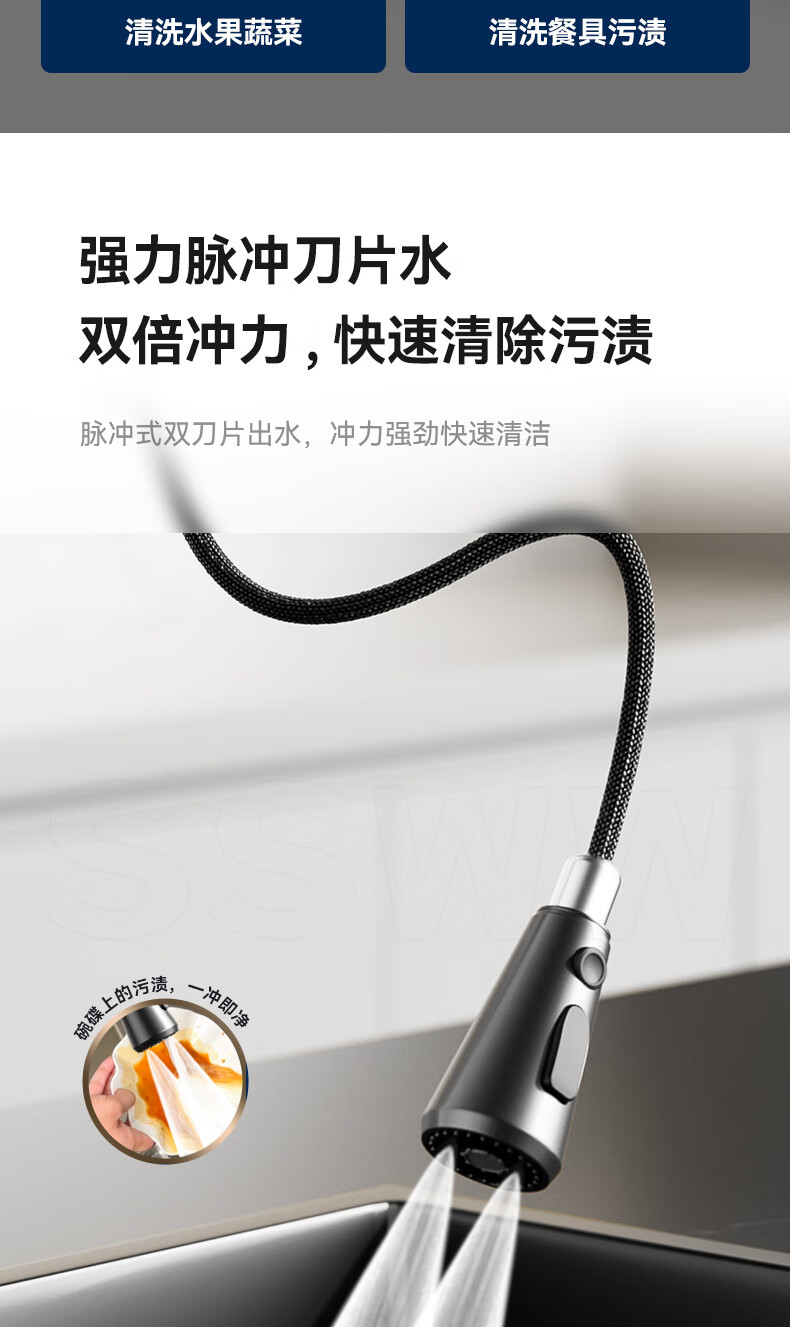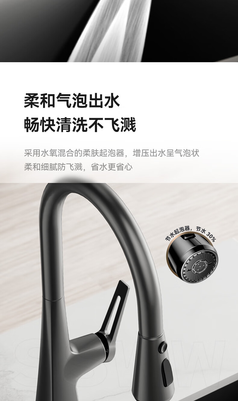 SSWW three-function kitchen pull-out faucet 360, rotating hot and cold dual controls, fine copper body kitchen sink faucet, Feitian series, fine copper hot and cold pull-out - silver