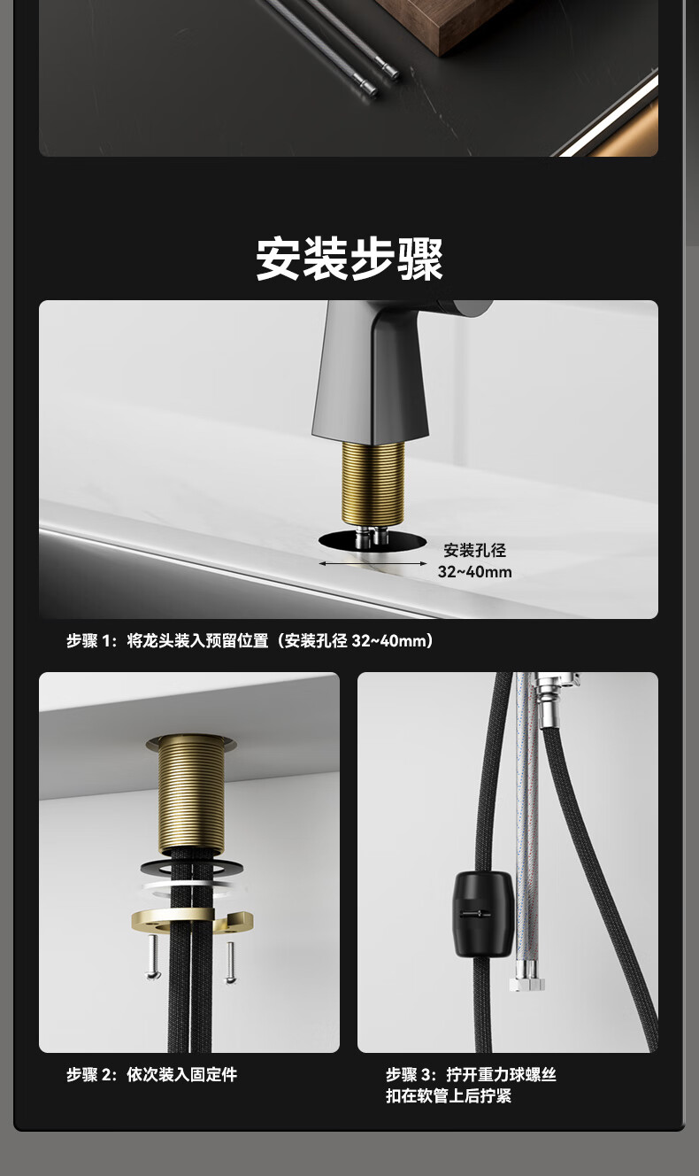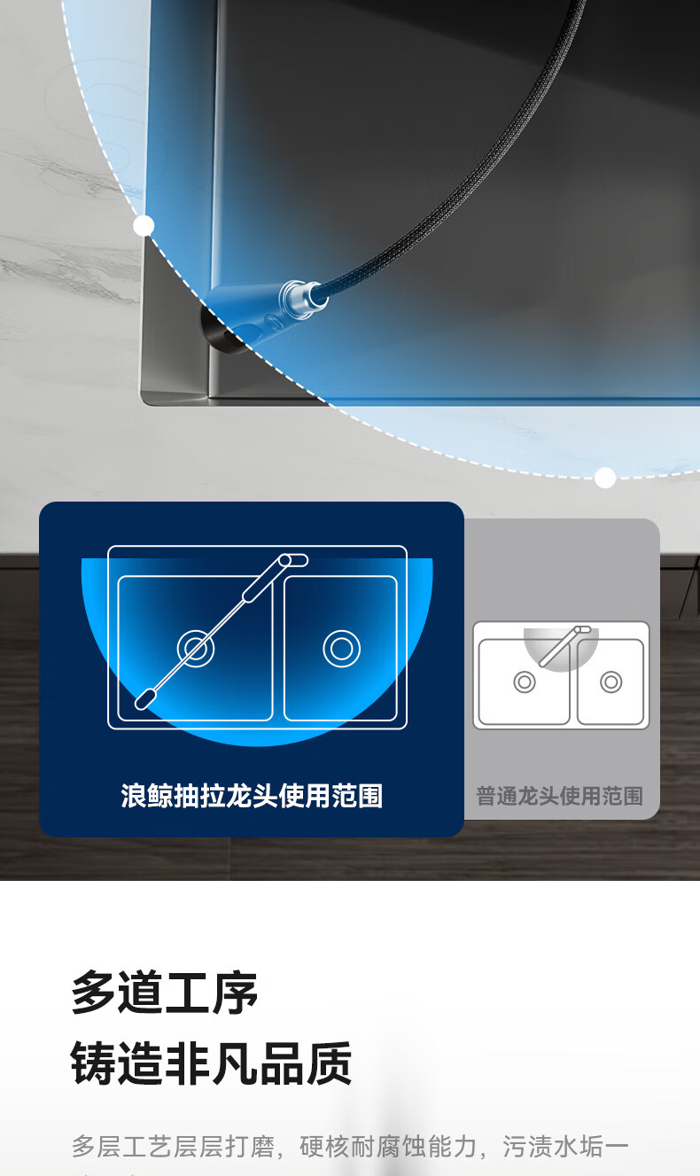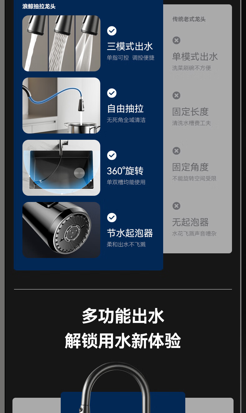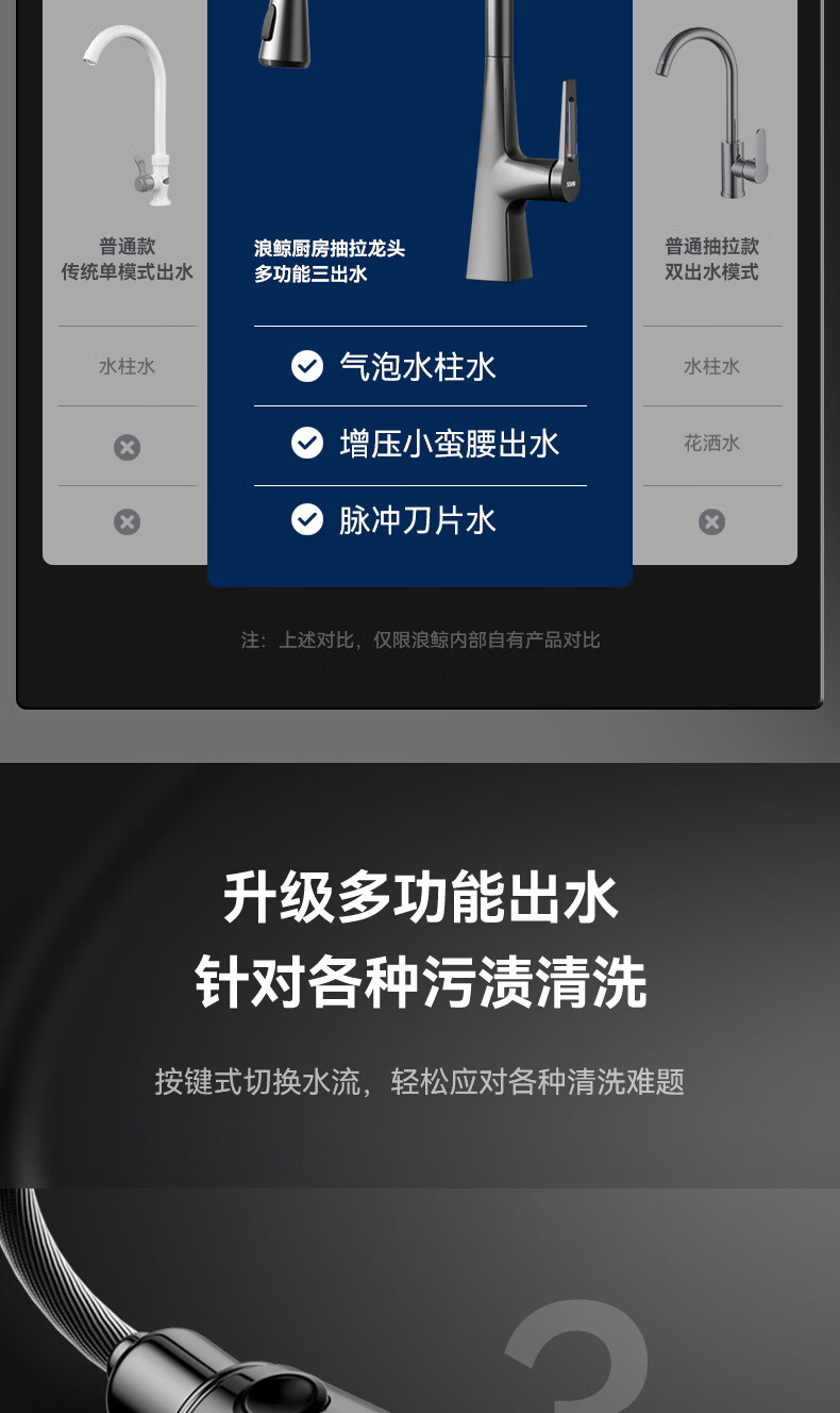 SSWW three-function kitchen pull-out faucet 360, rotating hot and cold dual controls, fine copper body kitchen sink faucet, Feitian series, fine copper hot and cold pull-out - silver