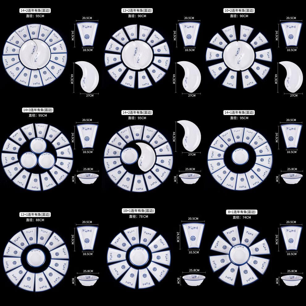 Naixun set plate platter home combination New Year tableware set family creative Internet celebrity dishes plate hotel special restaurant white 10 outer plates + 1 soup bowl