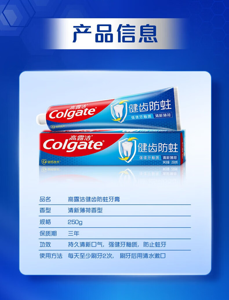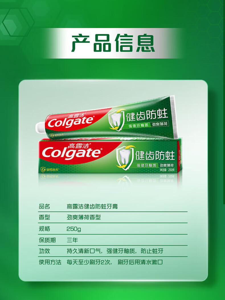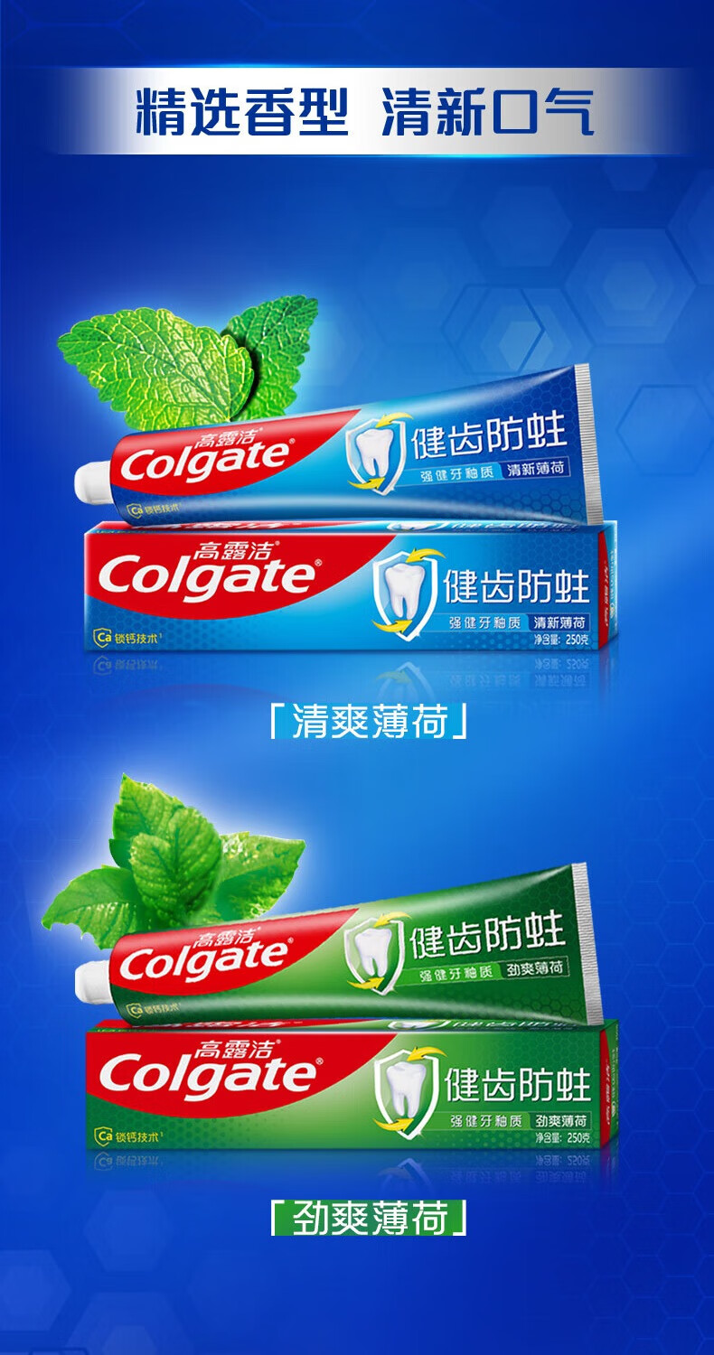 Colgate Colgate Total Anti-Cavity Mint Toothpaste 250g Fresh breath, strengthen tooth enamel, prevent cavities, refreshing 250g*1 tube +220g*1