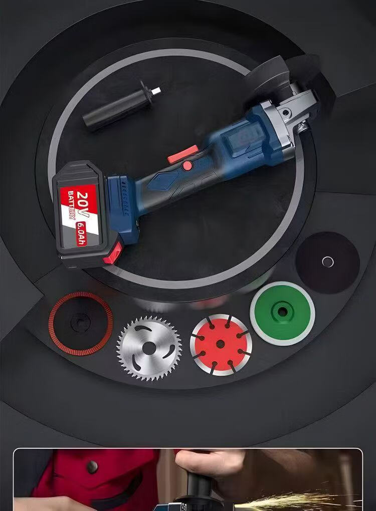 Angle grinder brushless cutting machine lithium battery hand grinder wireless grinder cutting disc high power industrial grade genuine high power pure copper brushless free gift package long battery life 20 cells 8.0AH two batteries one charge