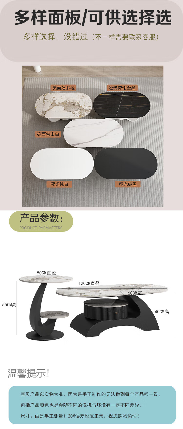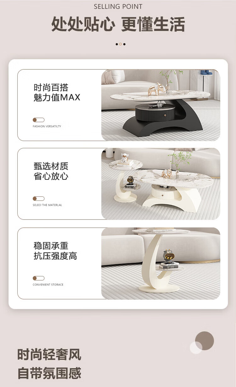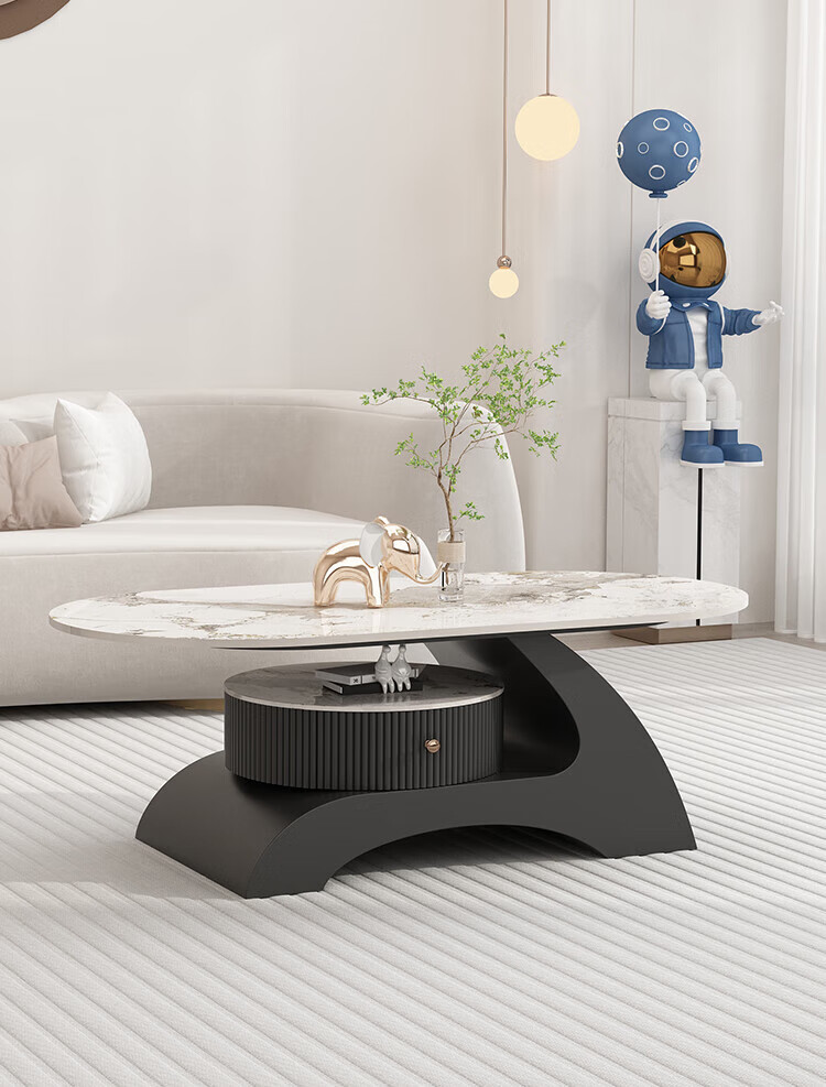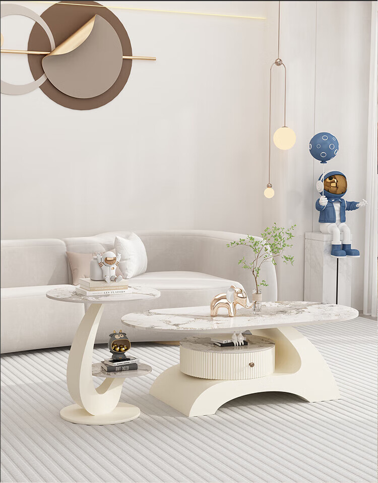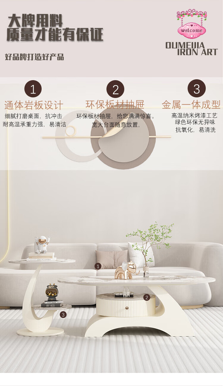 Champs Ruijing cream style slate coffee table for living room 2026 new style light luxury high-end home modern simple creative tea table off-white base + snow mountain white slate + side table 50CM length 130CM width 70CM height 45CM