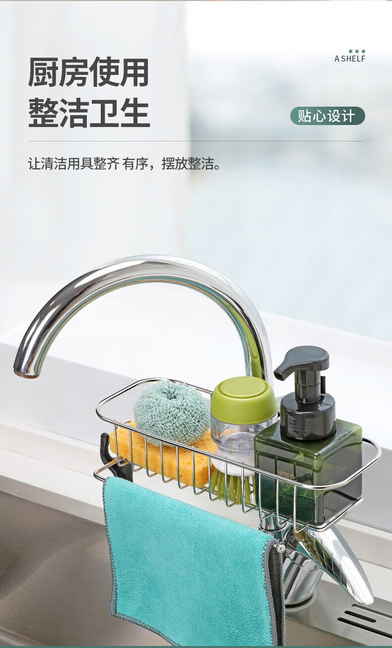 Kitchen faucet rack, dishwashing sink, sink rack, drain basket, sponge brush, cleaning cloth, water filter, storage artifact, faucet rack, standard model