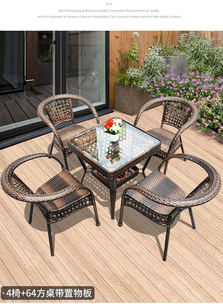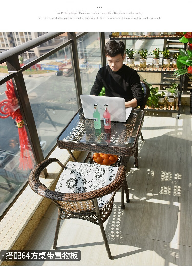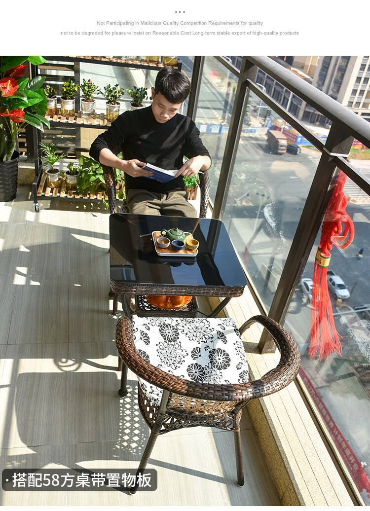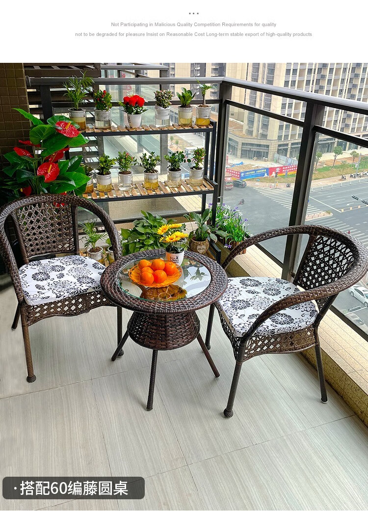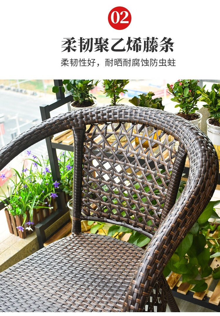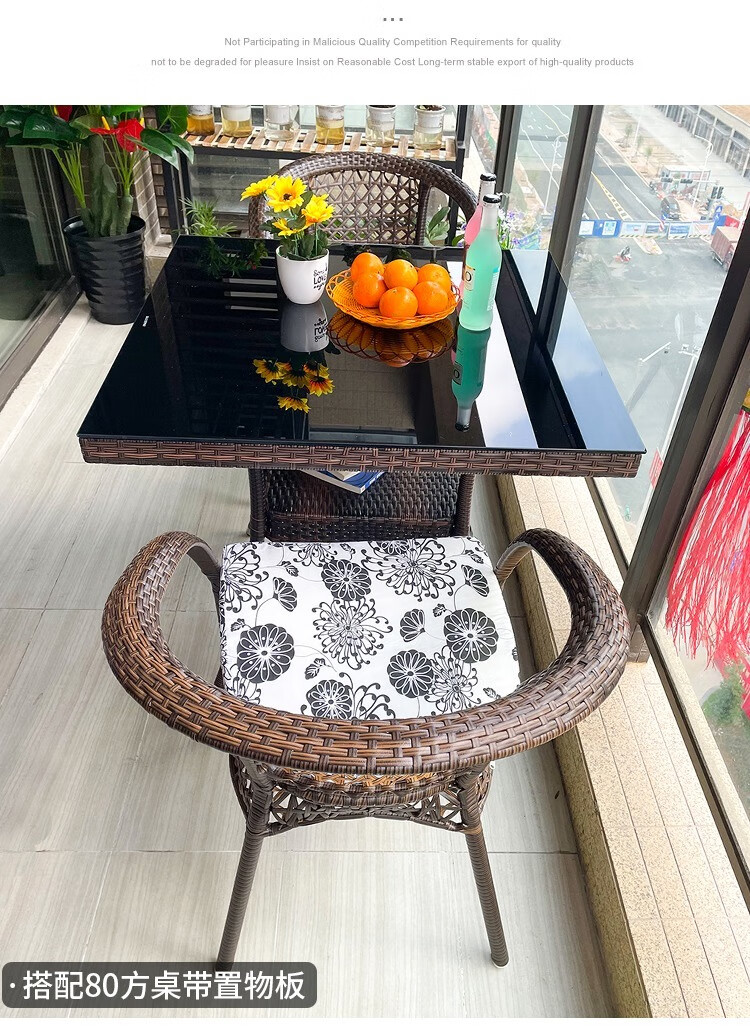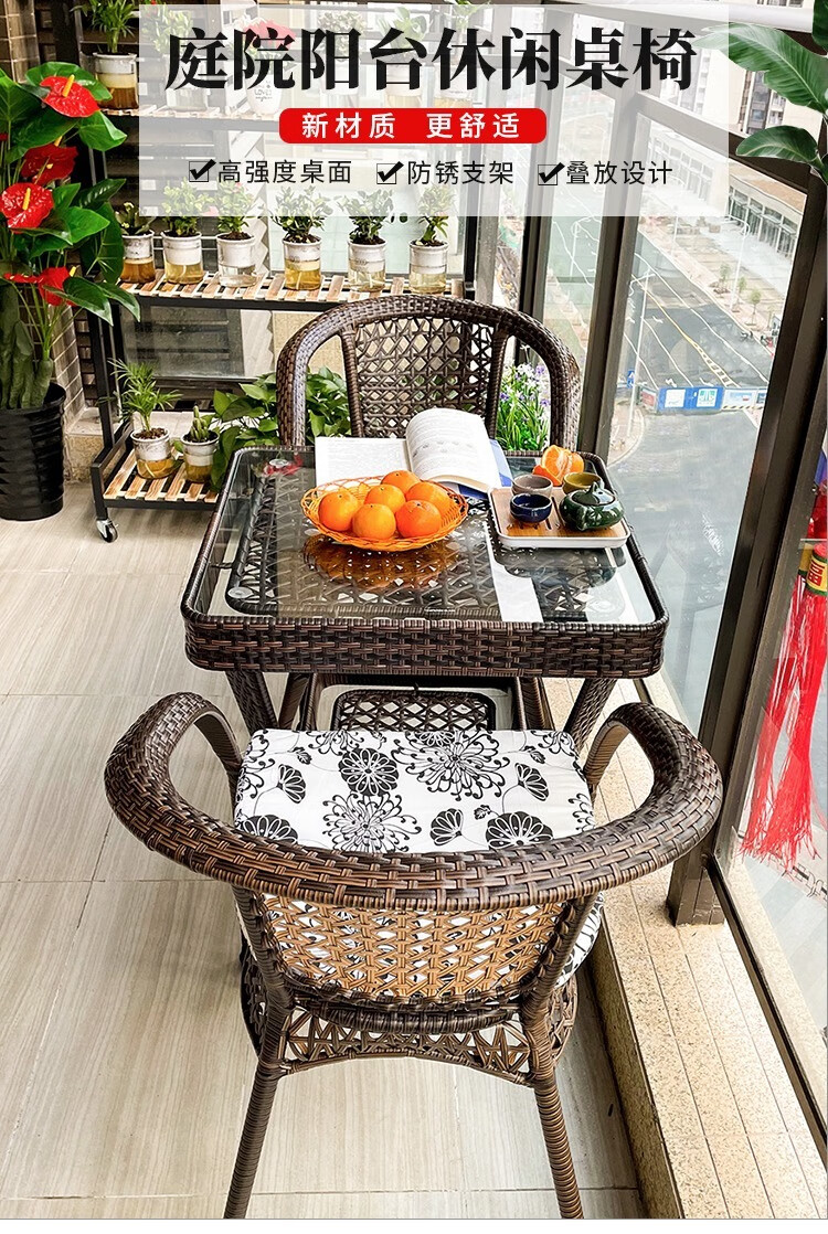 Jingheng outdoor table and chairs, courtyard balcony leisure rattan chair three-piece set, patio outdoor chair, rattan chair, small coffee table combination, 2 chairs + 64 square table, free cushion