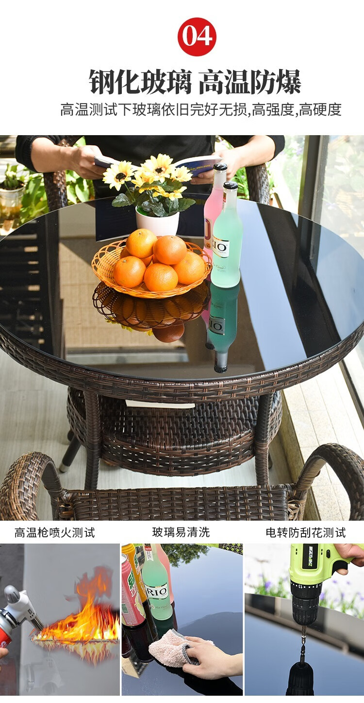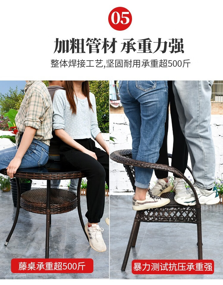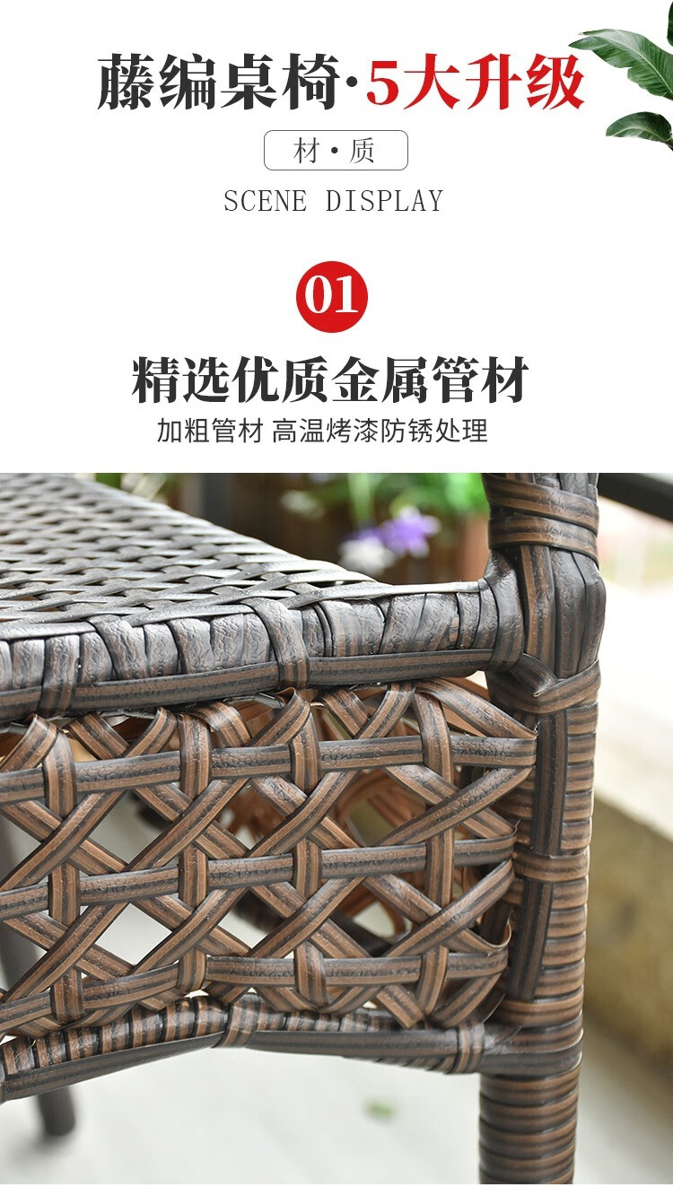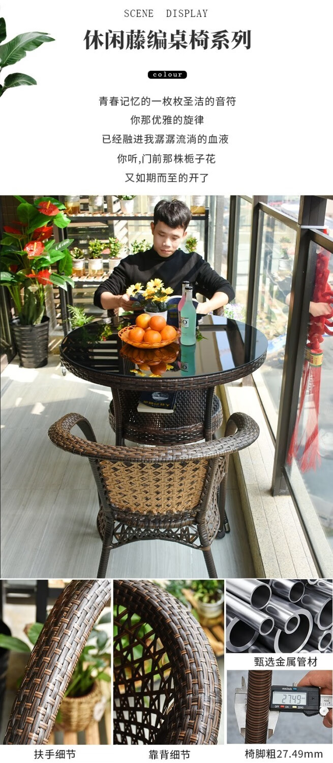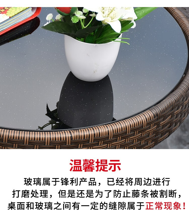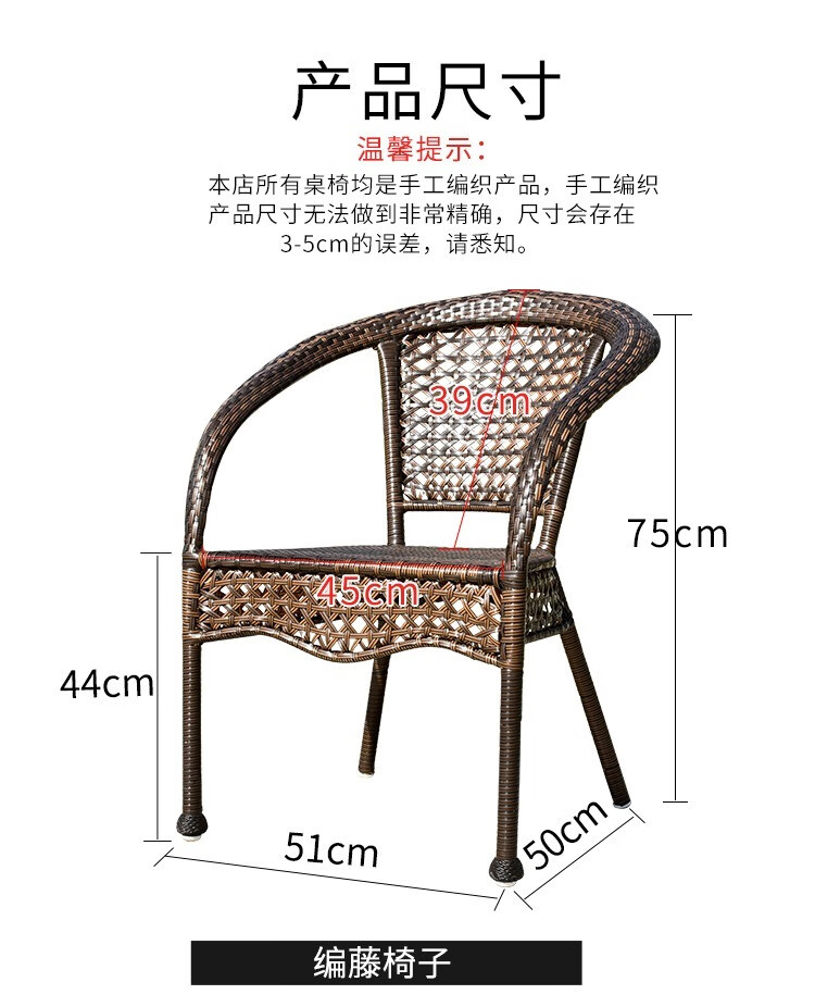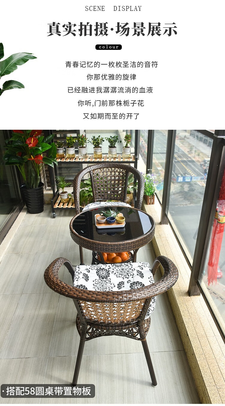 Jingheng outdoor table and chairs, courtyard balcony leisure rattan chair three-piece set, patio outdoor chair, rattan chair, small coffee table combination, 2 chairs + 64 square table, free cushion