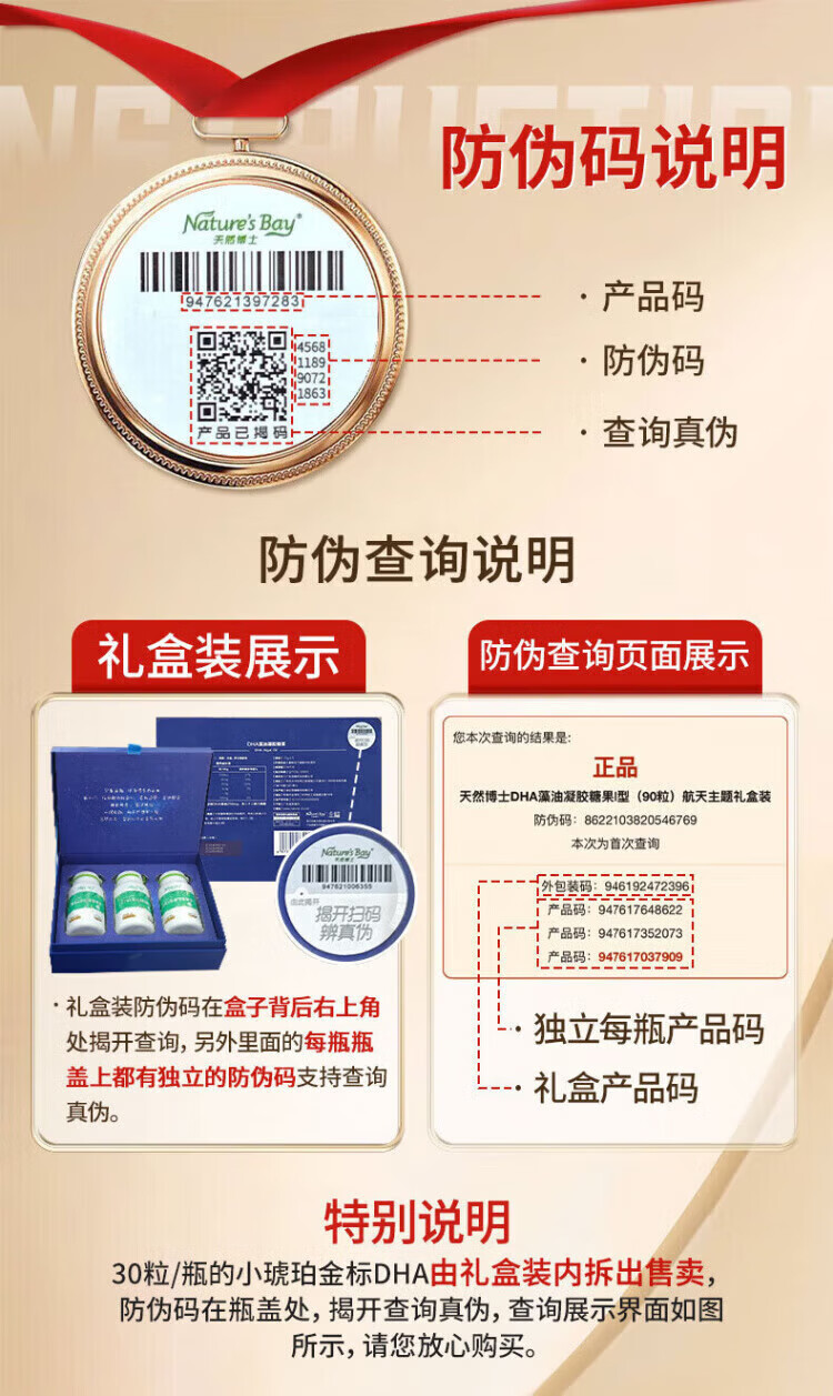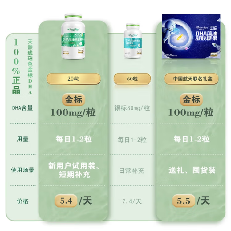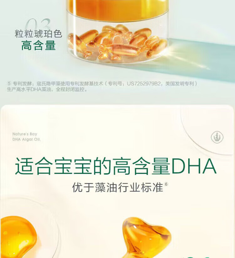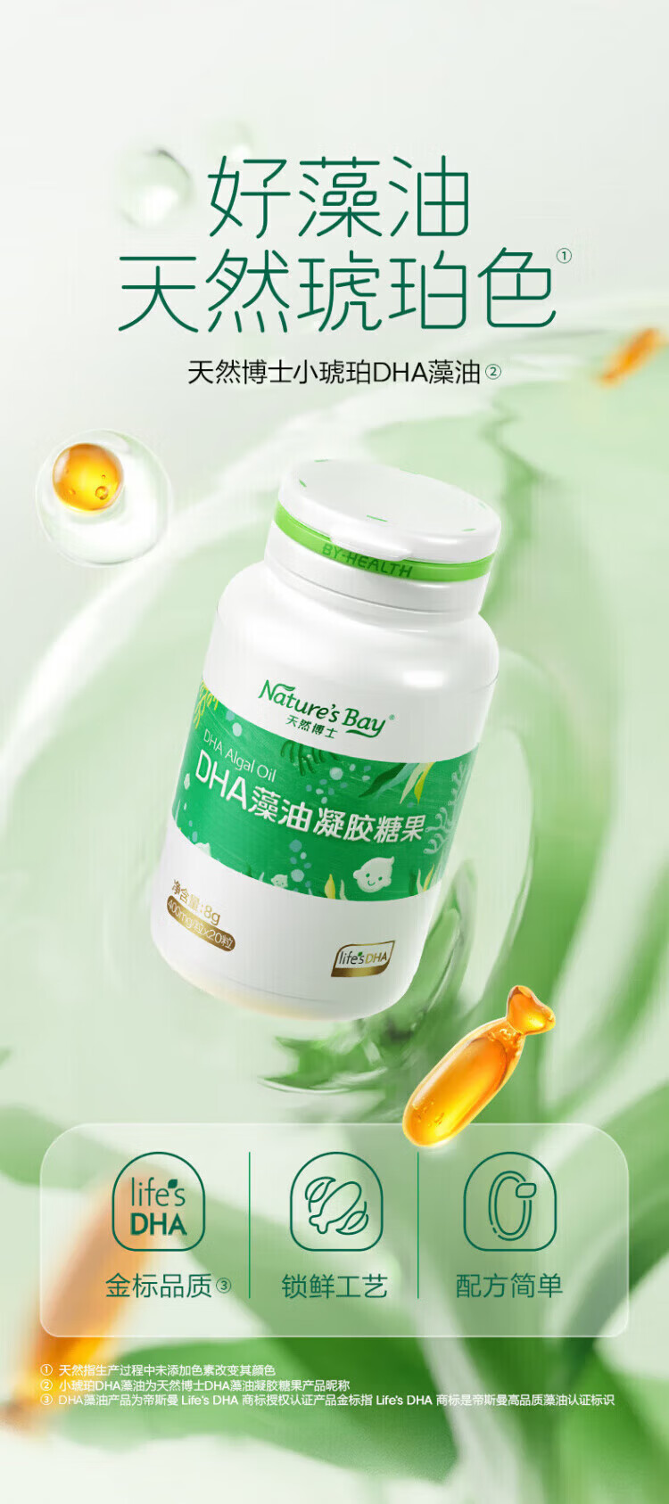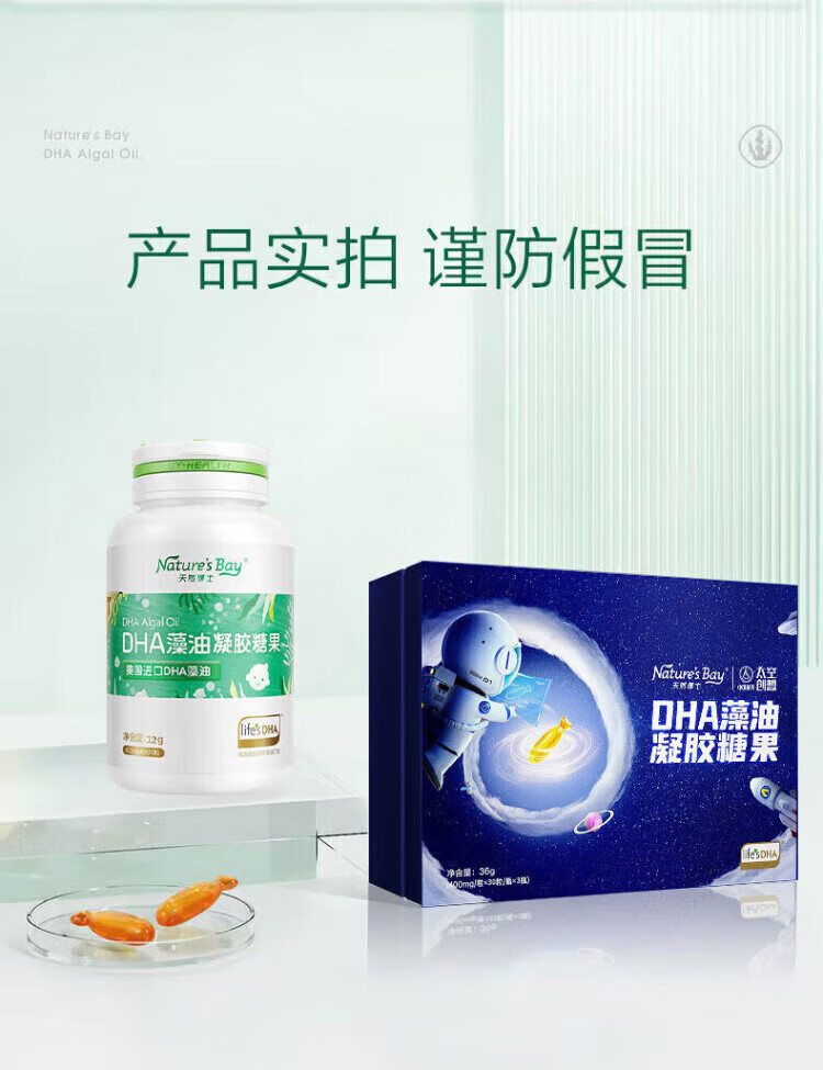 Natural Dr. DHA gold label algae oil small amber infants, primary school students, teenagers, pregnant women, adults 0-3 years old, edible high content small amber algae oil 20 capsules * 1 bottle, anti-counterfeiting can be checked