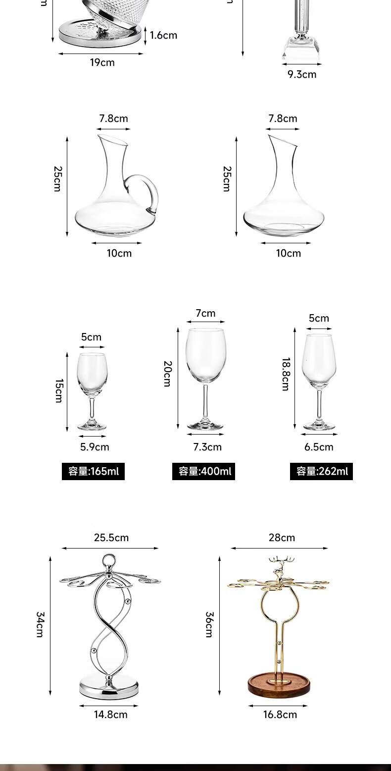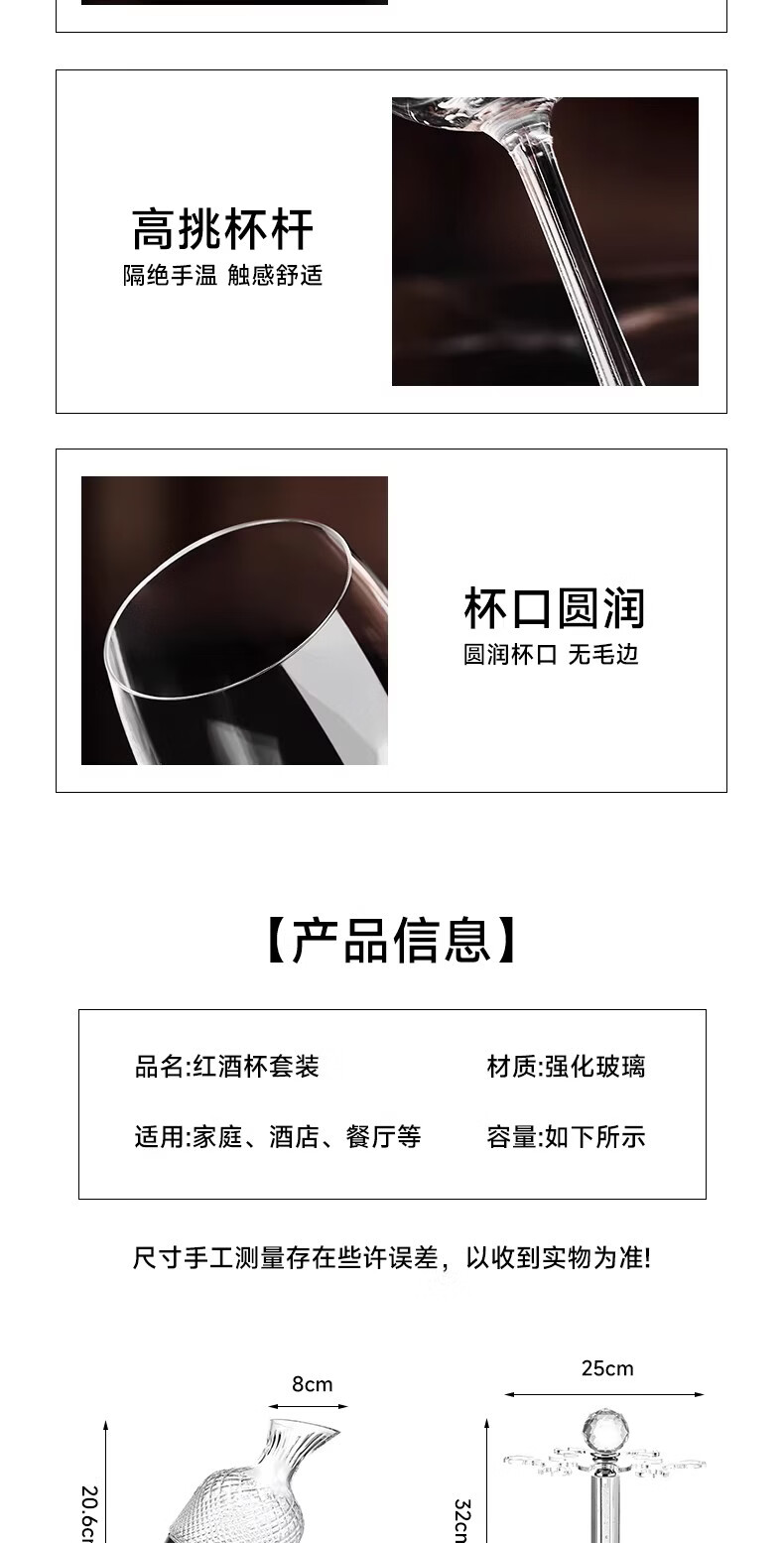 MARTIGUES high-end crystal glass goblet white wine glass red wine glass decanter universal set 262ml goblets*6+1800ml decanter with handle
