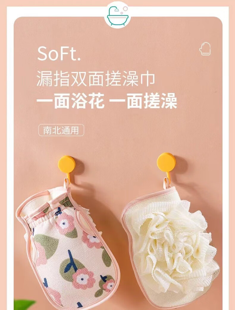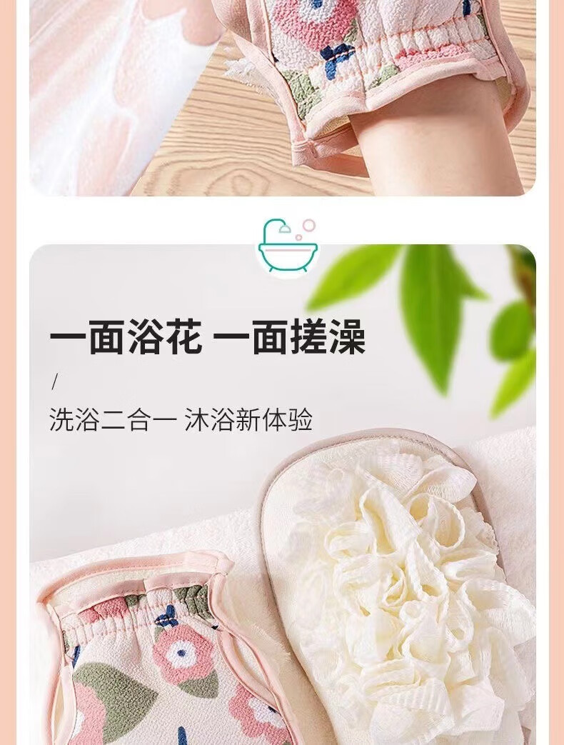 Mi Shuo bath towel and bath flower two-in-one women's special double-sided bath towel easy to rub mud household bath gloves bath artifact 1 small red flower (two-in-one bath glove)