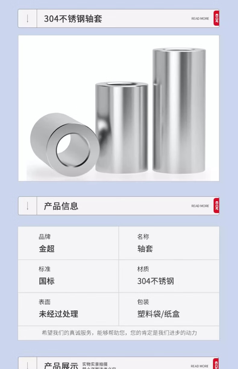 Jinchao 304 stainless steel extended cylindrical casing bushing bushing hollow tube toothless screw spacer casing pin sleeve 3*8*10 (10 pieces)
