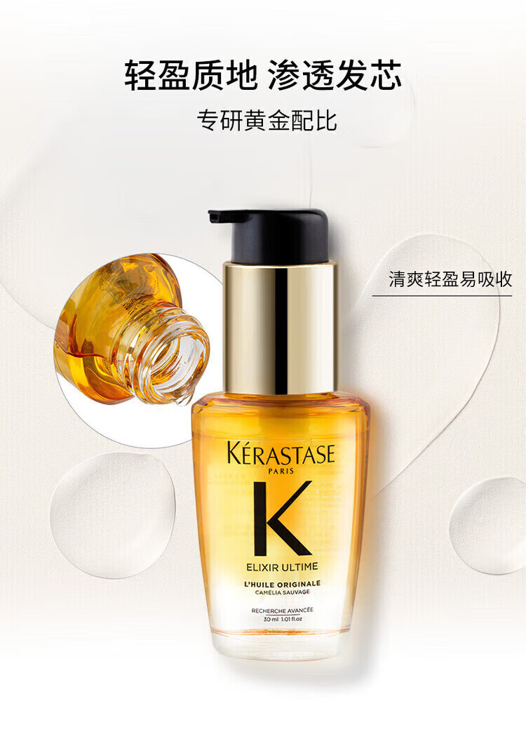 KERASTASE Dry, frizzy, dyed, permed, damaged, smooth, shiny and shiny hair conditioner, hyaluronic acid hydrating hair conditioner, KERASTASE gilded camellia essential oil 15ml