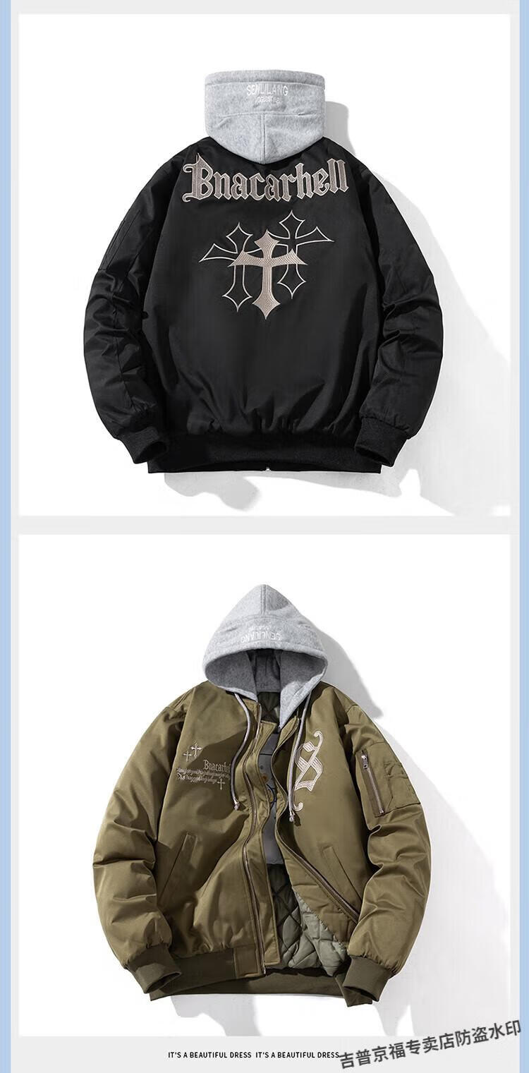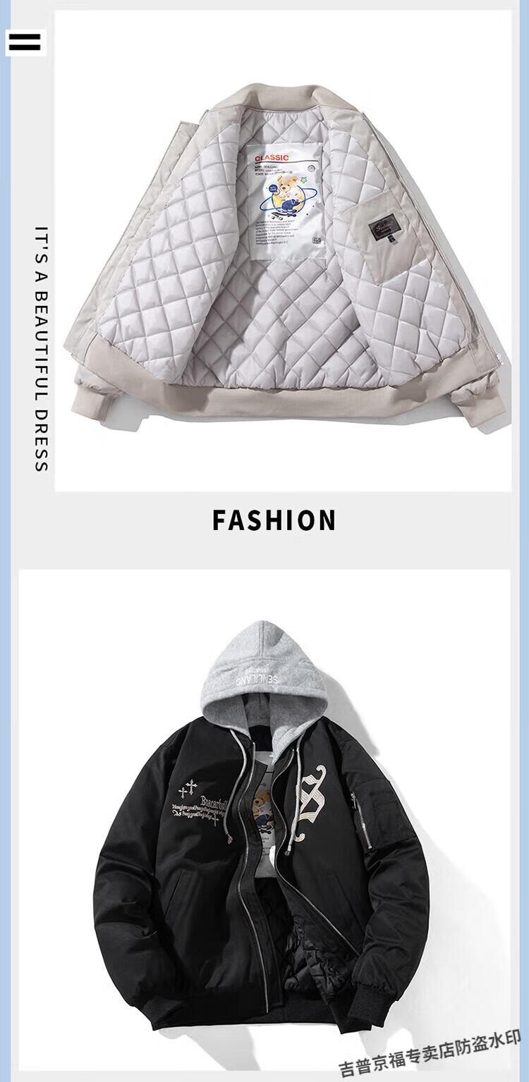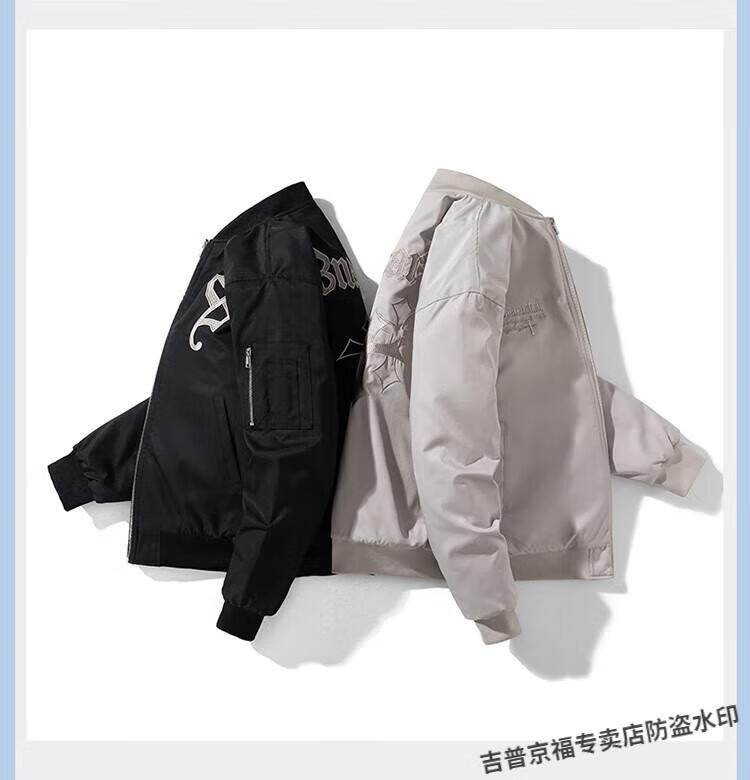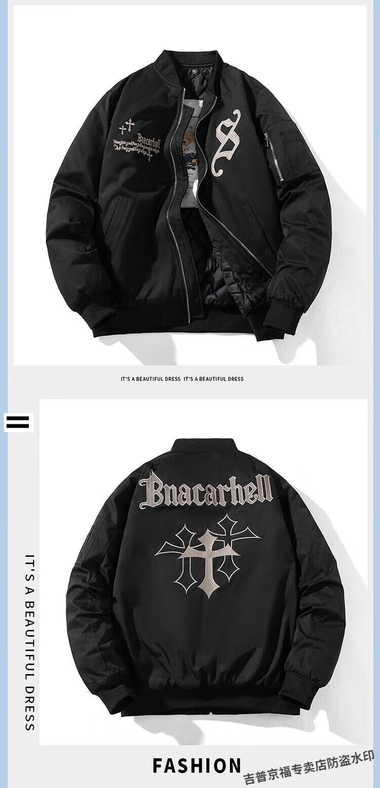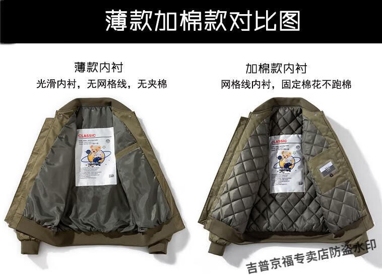 JEEP SPIRIT Spring, Autumn and Winter American High Street Bomber Jacket Loose Baseball Uniform for Men and Women Couple Trendy Brand Cotton Coat Thickened Jacket Black (Spring and Autumn Thin Style) Hoodless XL