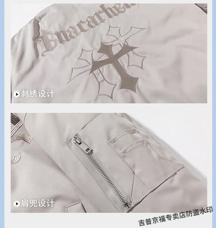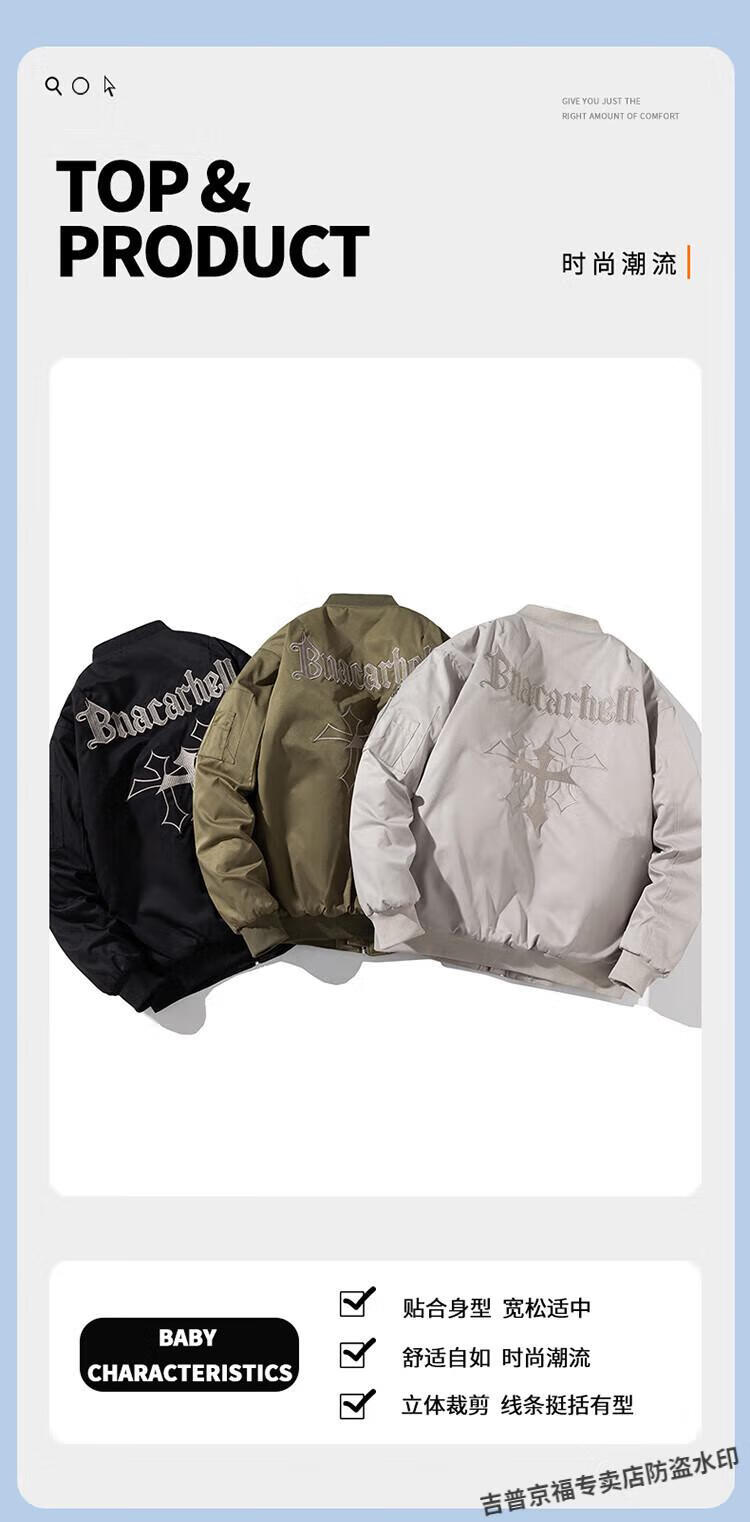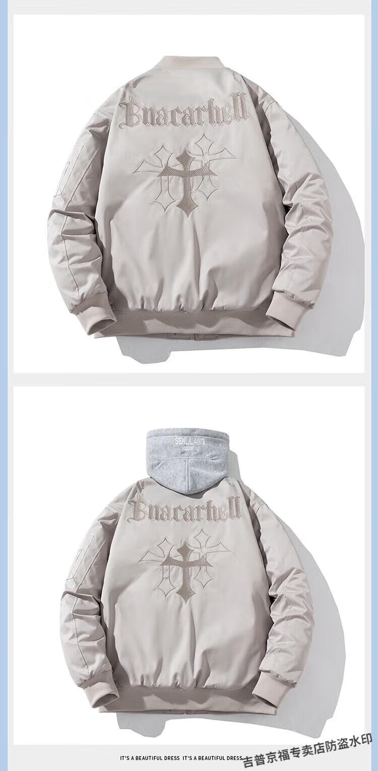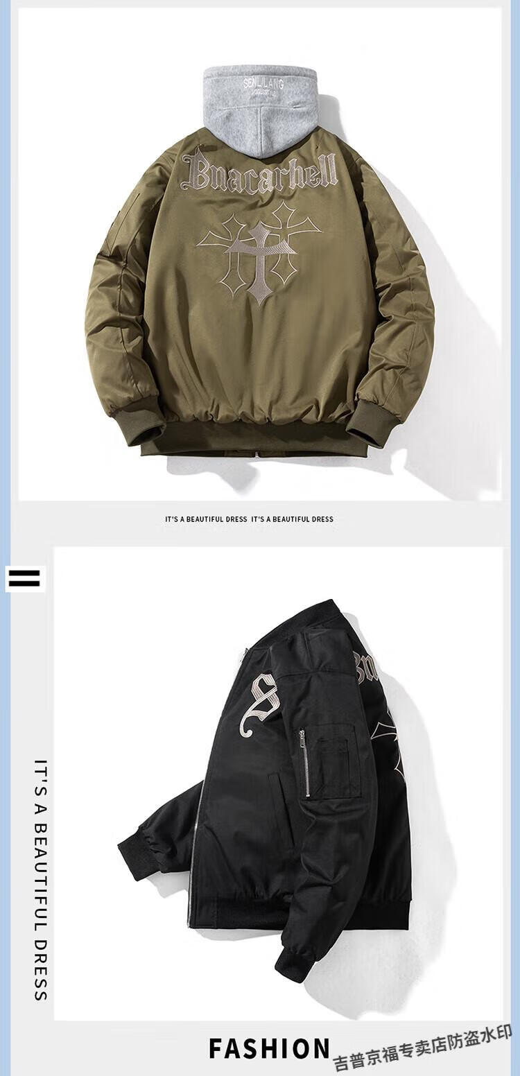 JEEP SPIRIT Spring, Autumn and Winter American High Street Bomber Jacket Loose Baseball Uniform for Men and Women Couple Trendy Brand Cotton Coat Thickened Jacket Black (Spring and Autumn Thin Style) Hoodless XL