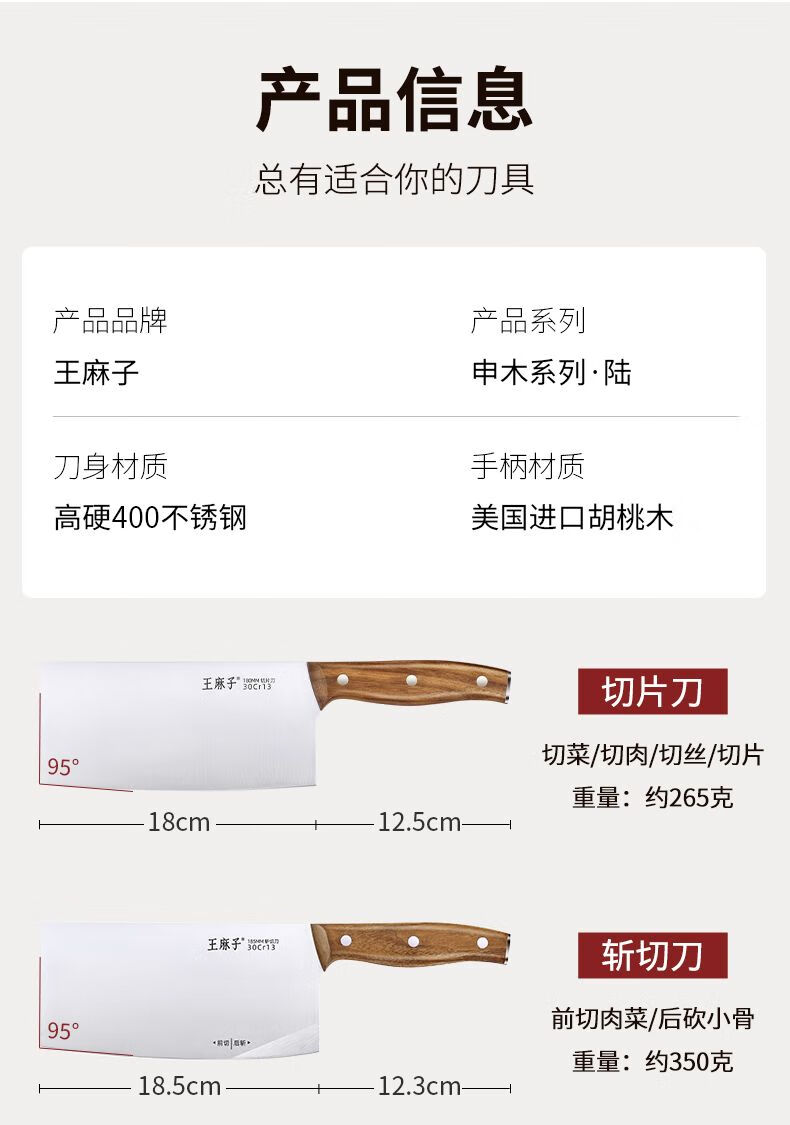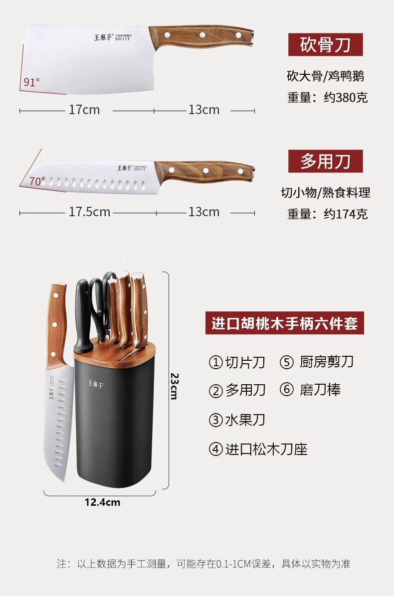 Wang Mazi Xinjiang delivery Wang Mazi knife 6-piece set carbonized beech handle household kitchen knife combination kitchen knife set Shenmu 6 slicing knife series