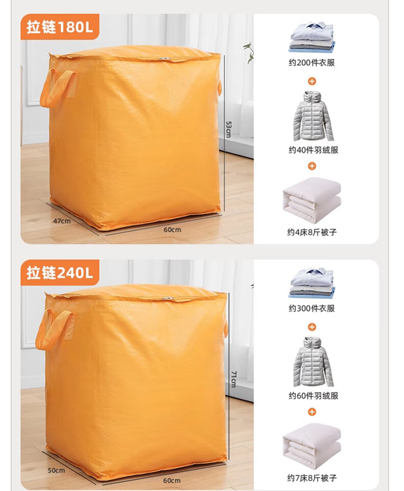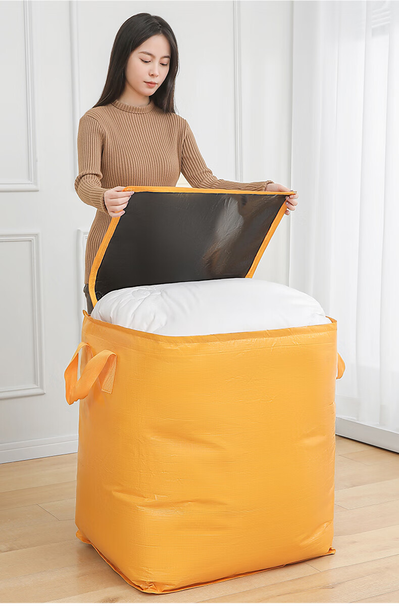 Linxia Haruyuki moving packing bag kindergarten quilt storage bag large capacity express transfer bag moving artifact woven luggage bag yellow zipper model medium size 180L-thick
