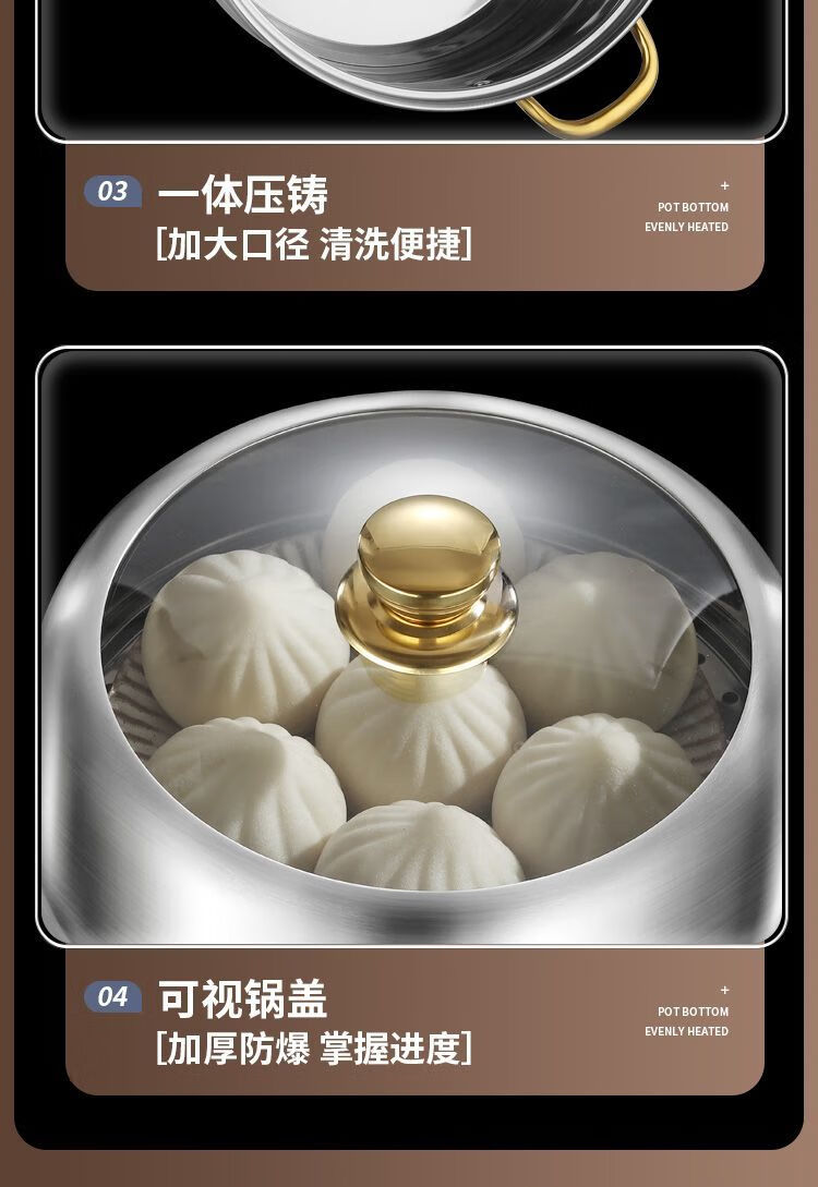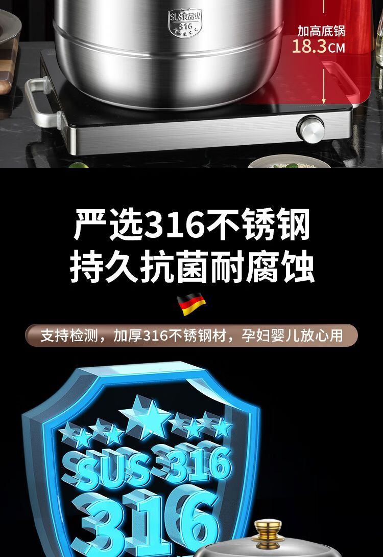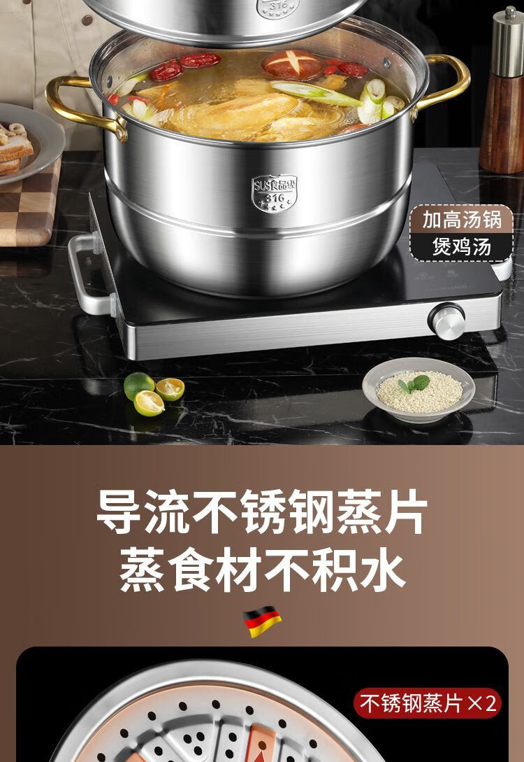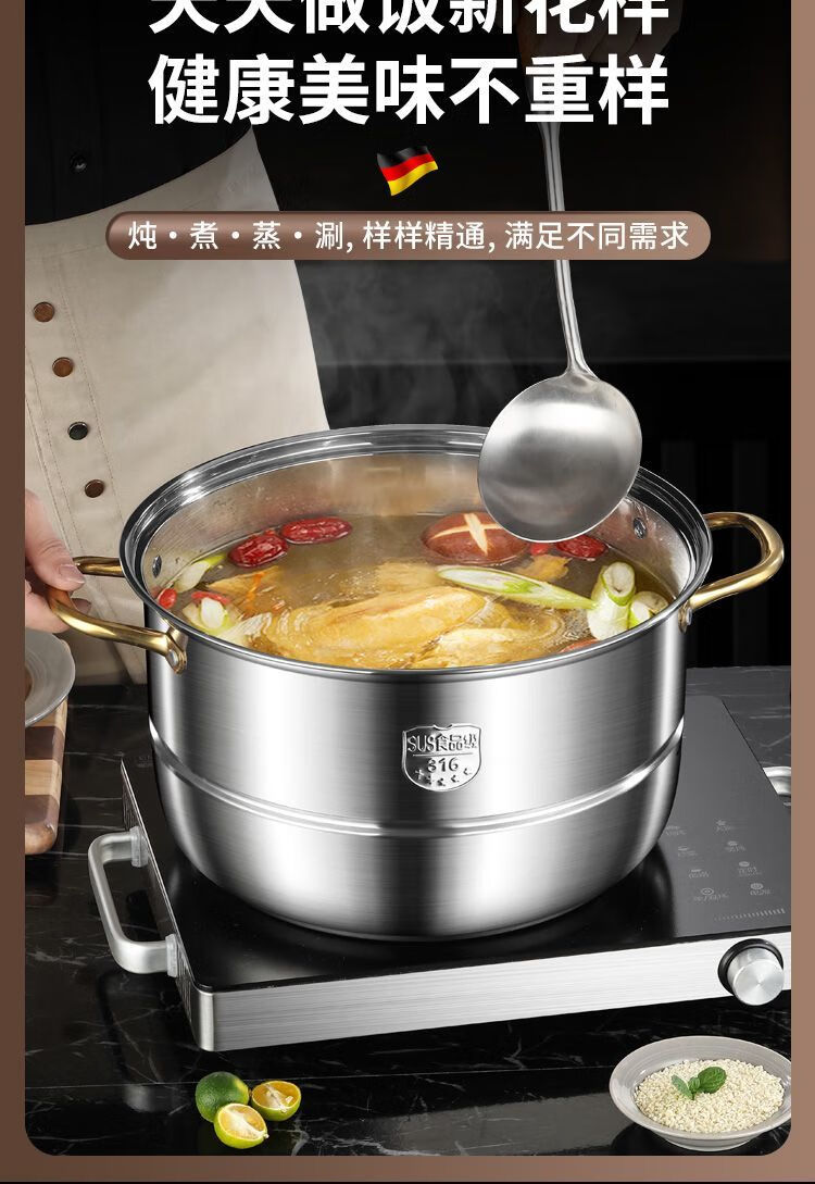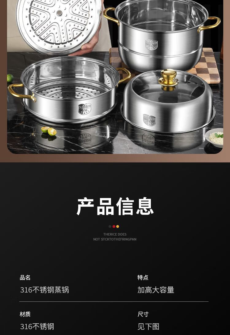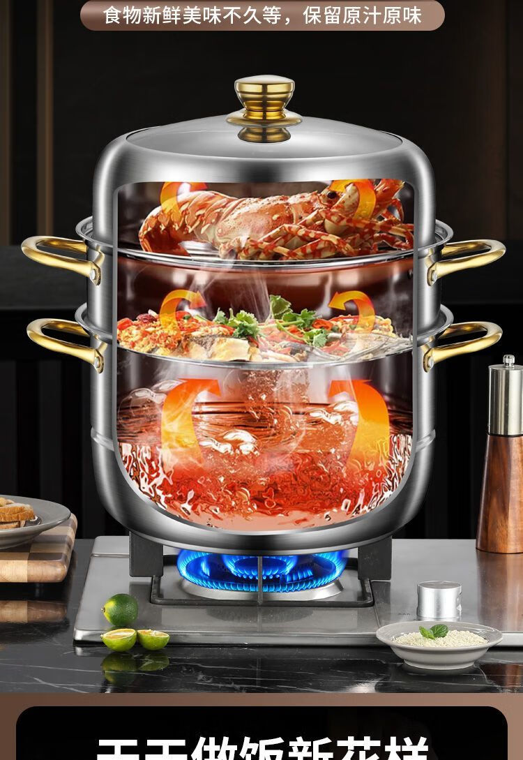 Chinuo steamer 316 thickened food-grade stainless steel household double-layer three-layer steamed bun pot gas stove induction cooker universal 316 stainless steel golden ear steamer 0cm extra thick 34cm two layers