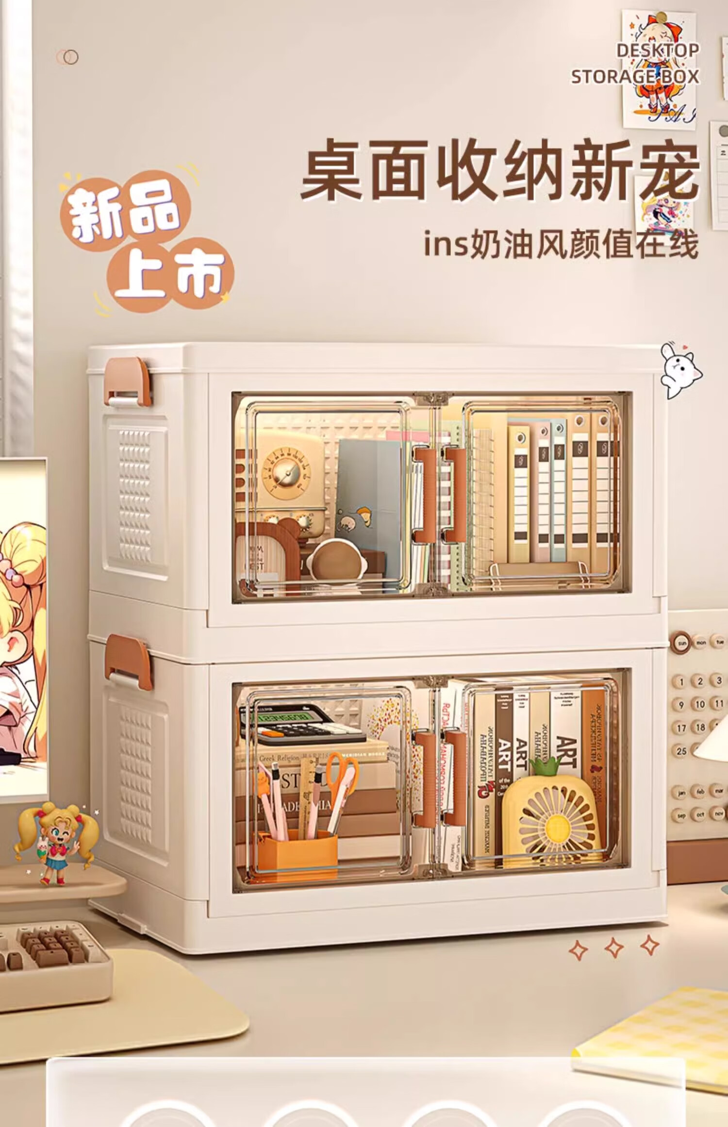 Nafenai desktop storage box multi-layer office workstation artifact desk storage cabinet stationery snacks sundries storage rack 29 sides wide - 2 layers magnetic door opening / stackable office desk workstation artifact