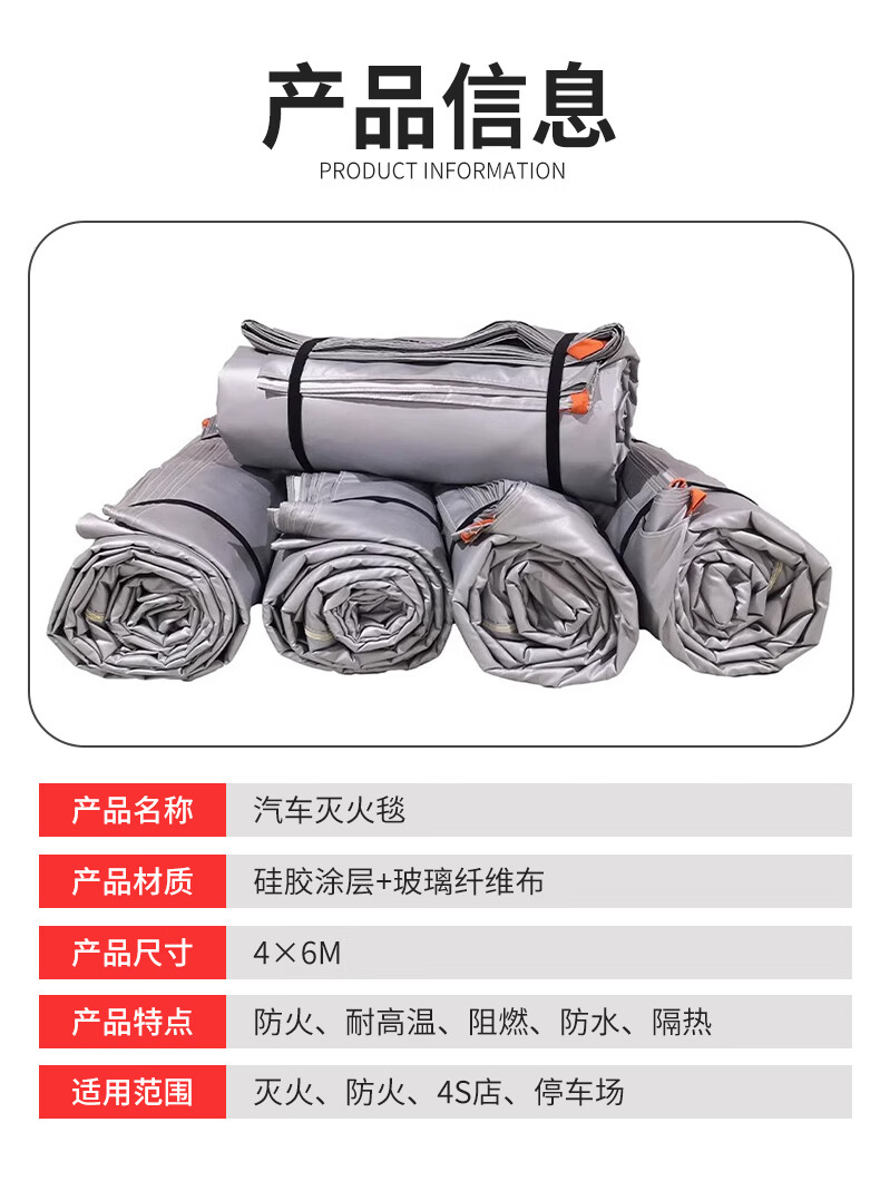 New energy vehicle fire-extinguishing blanket, fire-fighting flame-retardant cloth, glass fiber resistant to high temperature, charging motor vehicle clothing, self-ignition and oxygen isolation, fiberglass 6*8 automotive fire-extinguishing blanket