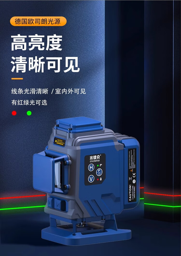 Mideke Mideke 14-line infrared level 12-line + 2-line combination high-precision strong light outdoor bricklayer woodworking wall 12-line red light level + 2-line green light combination set