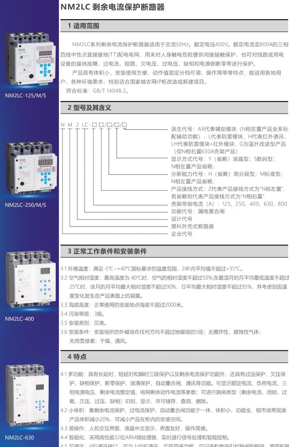 NM2LC automatic reclosing photovoltaic cost-controlled leakage adjustable over-voltage and under-voltage remote 485 communication circuit breaker NM2LC-800/M for photovoltaics