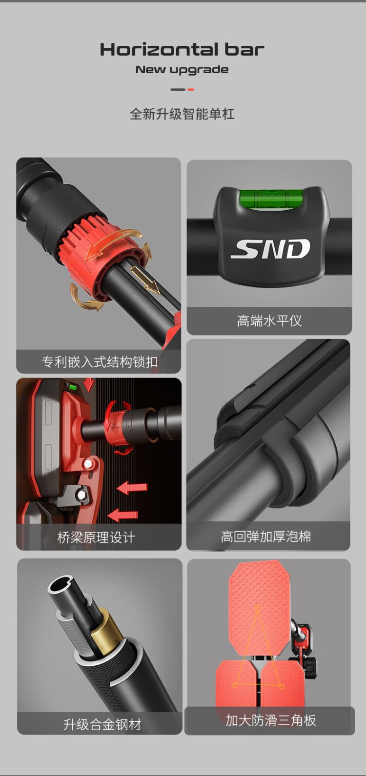 Schneider horizontal bar indoor pull-up device household horizontal bar pull-up rack floor fitness equipment tripod board upgraded anti-slip 96-135cm