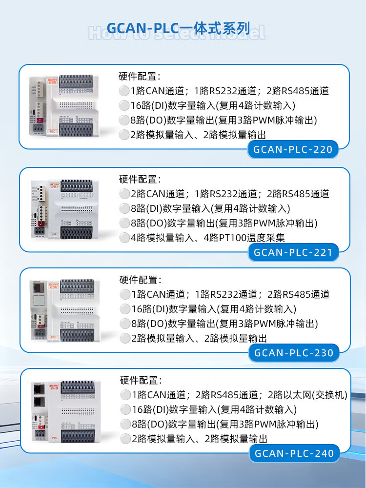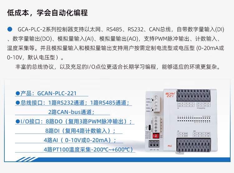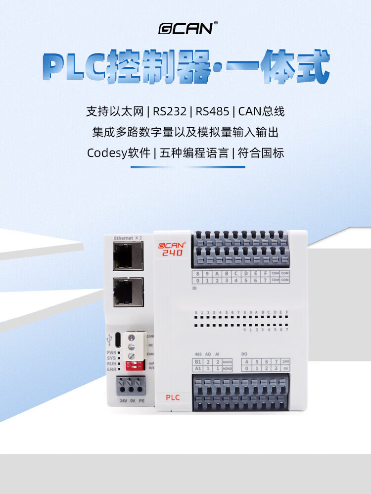 Guangcheng integrated PLC controller programmable supports CANopen with CAN port/network port/serial port digital input and output DIDO analog GCAN-PLC-220