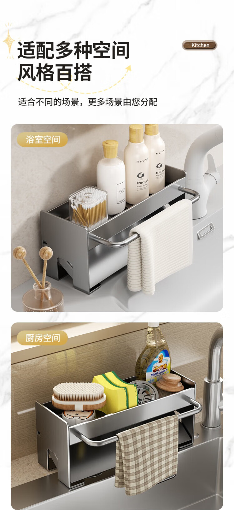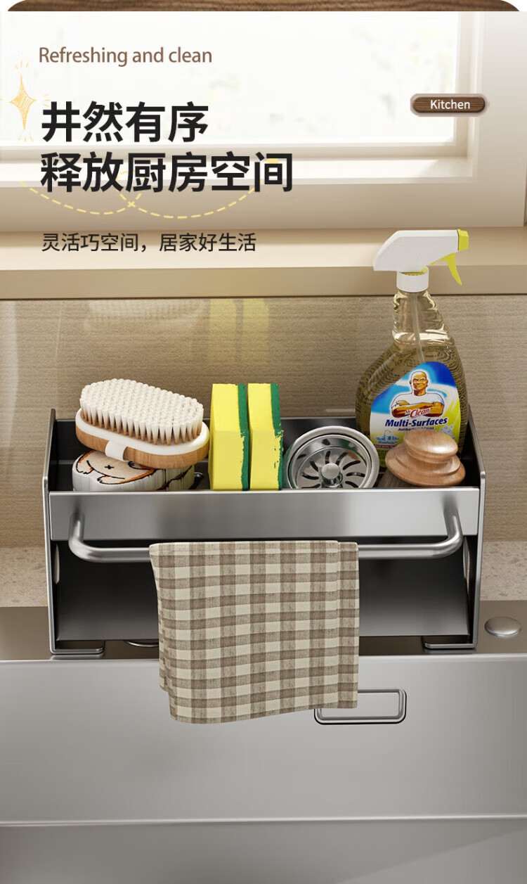 WCZ German kitchen rack floor-standing countertop faucet pool sink supplies household seasoning rag storage gun ash-countertop drain rack with rod