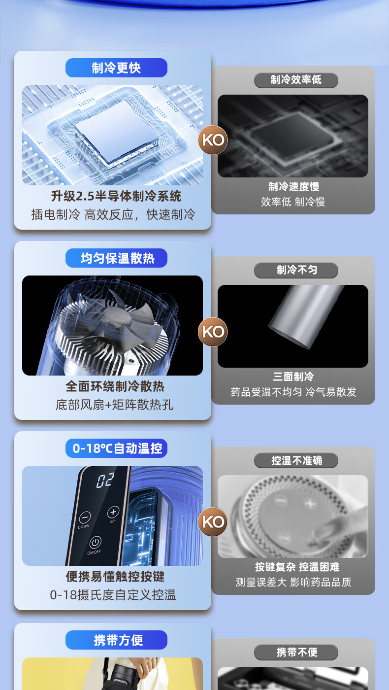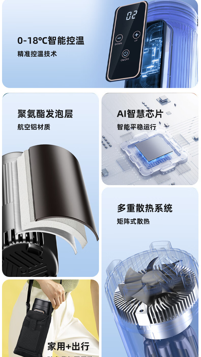Coolbao insulin refrigeration box portable mini refrigerator refrigeration cup portable car medicine constant temperature charging refrigeration cup digital display car home dual use dual battery about 12 hours (external battery) 1L