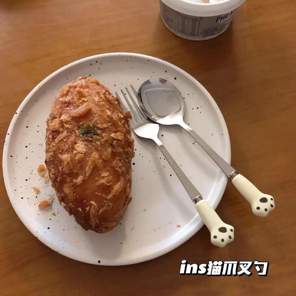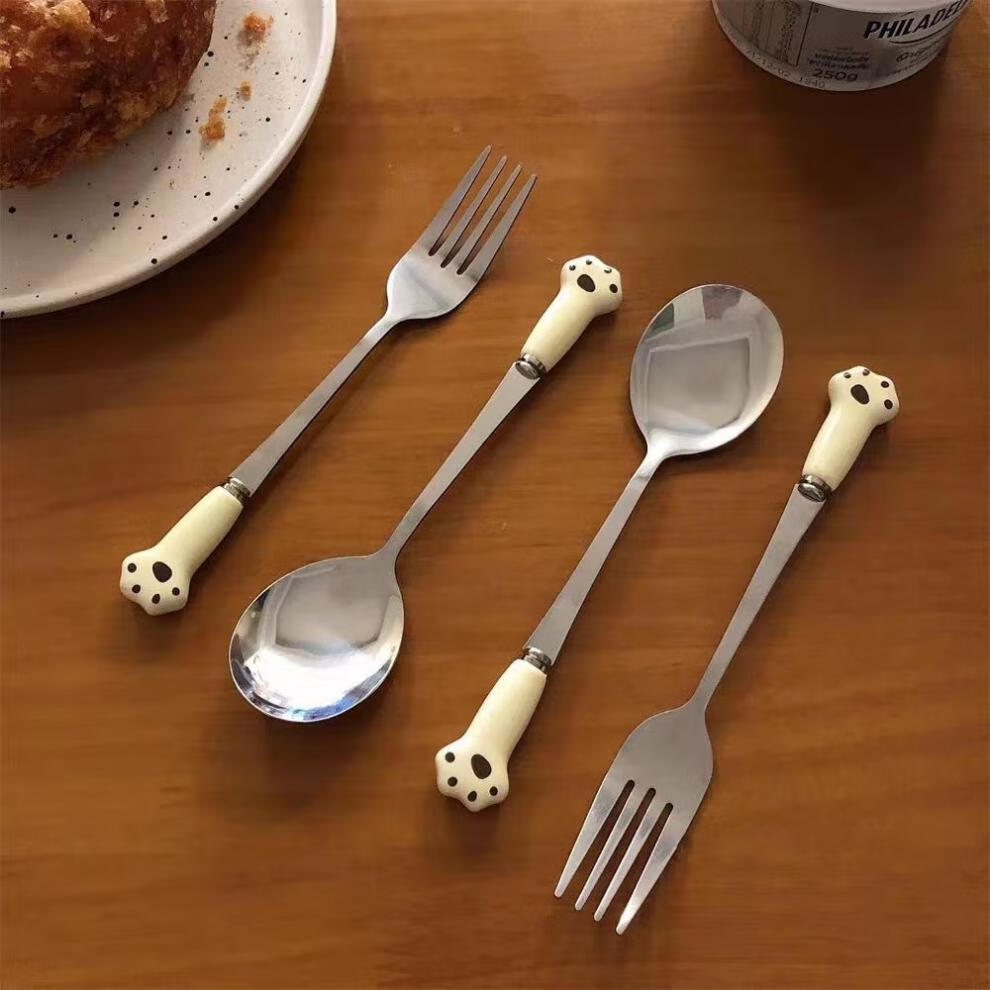 Ye Yu ins portable tableware set spoon, fork and chopsticks three-piece set for office workers, students and children wooden storage box ins rice cat claw #spoon+fork+wooden chopsticks gift box