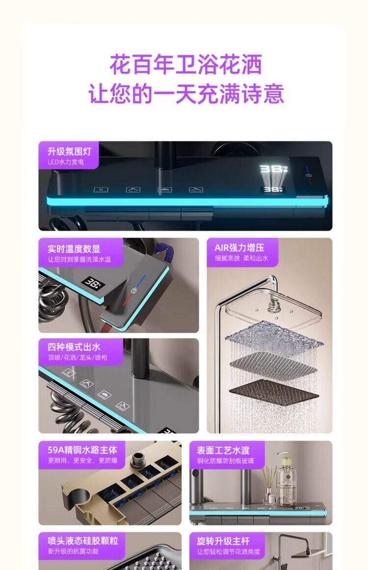 Hua Centenary Bathroom Constant Temperature Shower Set Flower Sun Shower Rain Bath Full Copper Bath Household Bathroom Shower Head N1 White Hot and Cold Style