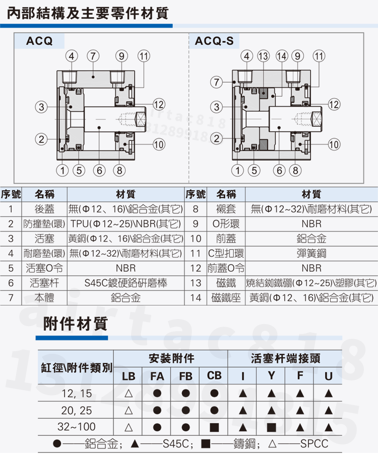 Airtac external tooth thin cylinder ACQ12/16/20/25X10X15X20X25X30X35/40X45X50 ACQ16X20B external tooth M6X1.0