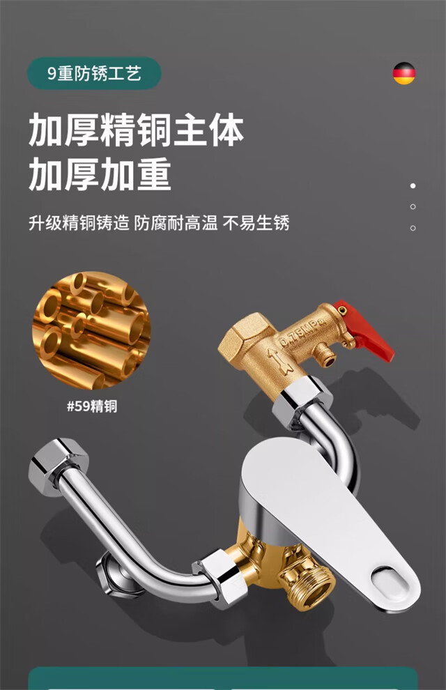 Schlefen German electric water heater U-shaped mixing valve shower set switch valve exposed all-copper body hot and cold shower faucet fine copper faucet + shower set
