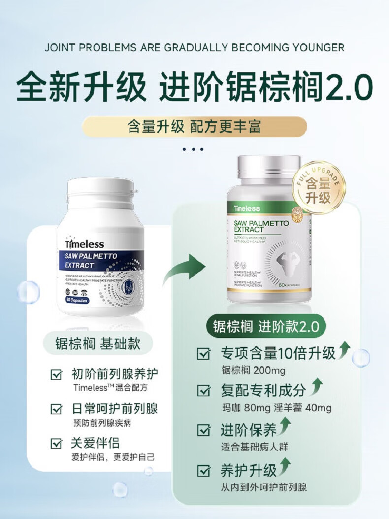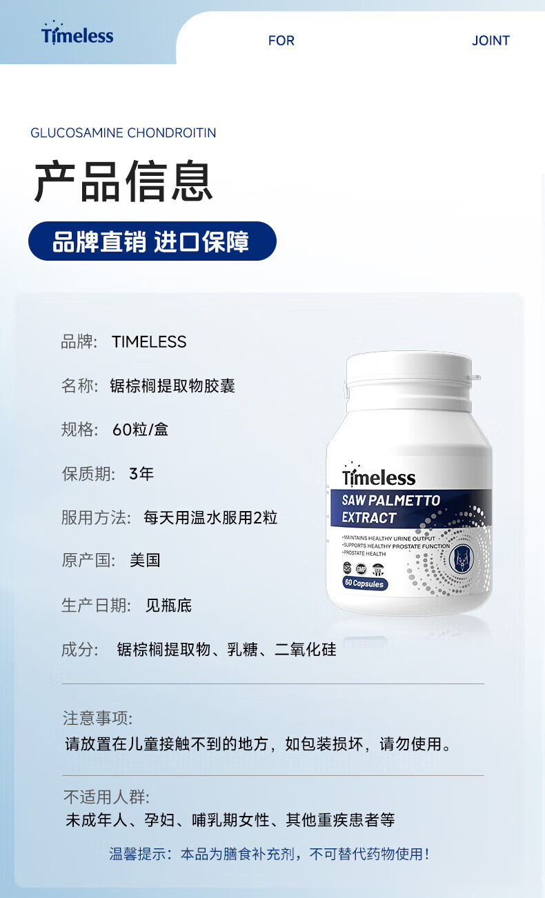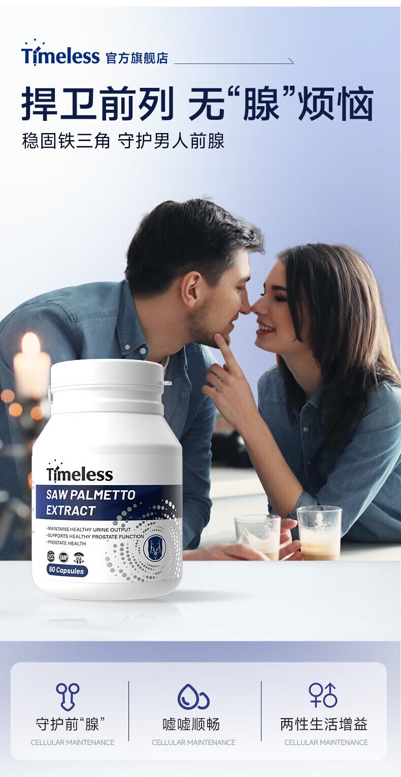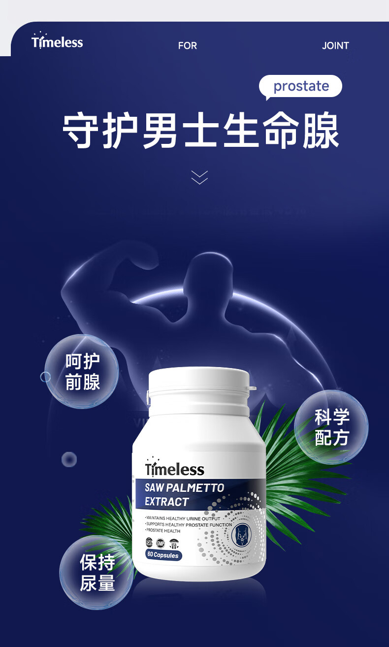 TIMELESS Saw Palmetto Extract Capsule Prostate Healthy Men's Urethral Nocturia and Male Prolapse Saw Palmetto 2.0 Advanced Model One Box Trial Pack, Recommended Periodic Conditioning