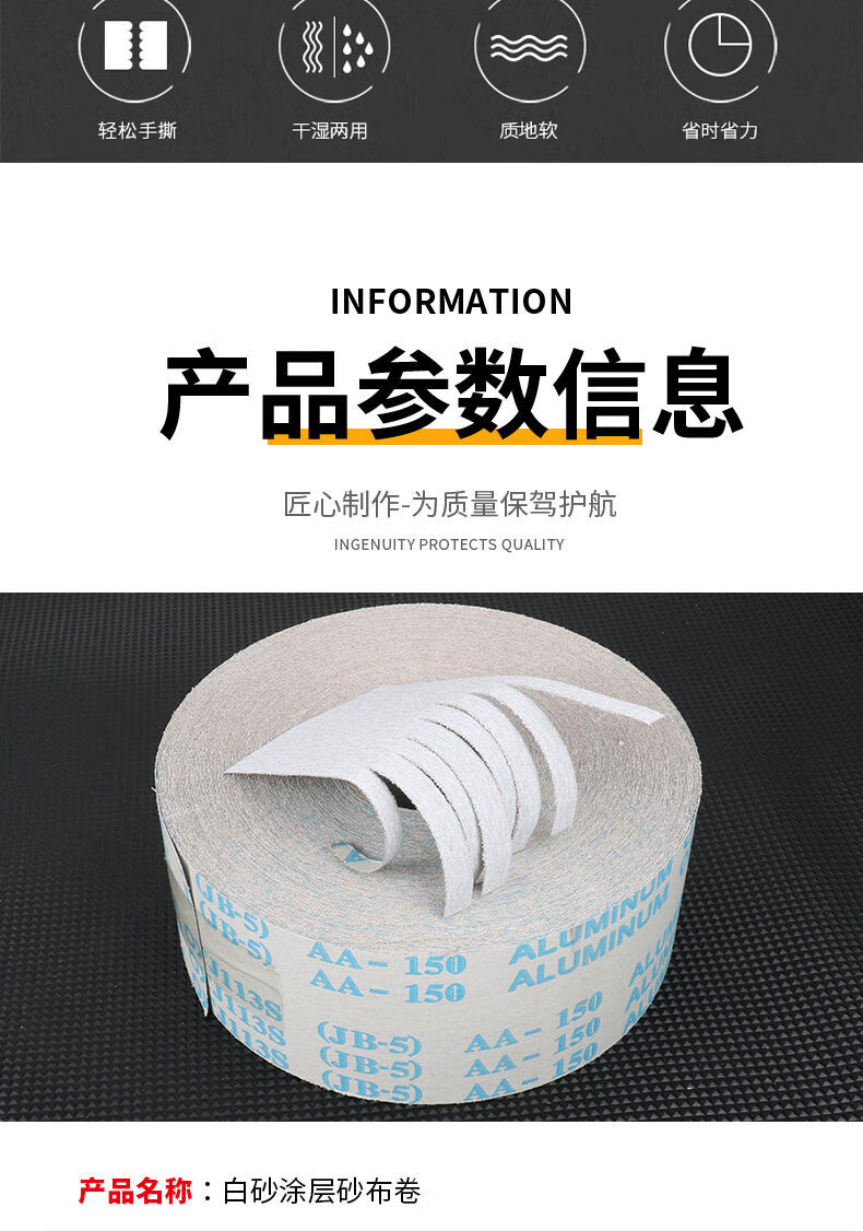Wen Yijia customized coated dry sanding hand-teared emery cloth roll white soft cloth roll 4 inches 4.5 inches furniture paint woodworking sandpaper industrial style white sand 4.5 inches 115MM (150 mesh)