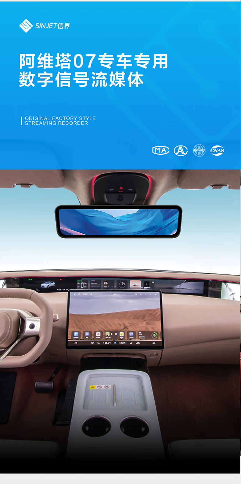 Xinjie is specially used for Avita 07 streaming rearview mirror driving recorder digital signal high-definition night vision single lens-official standard configuration