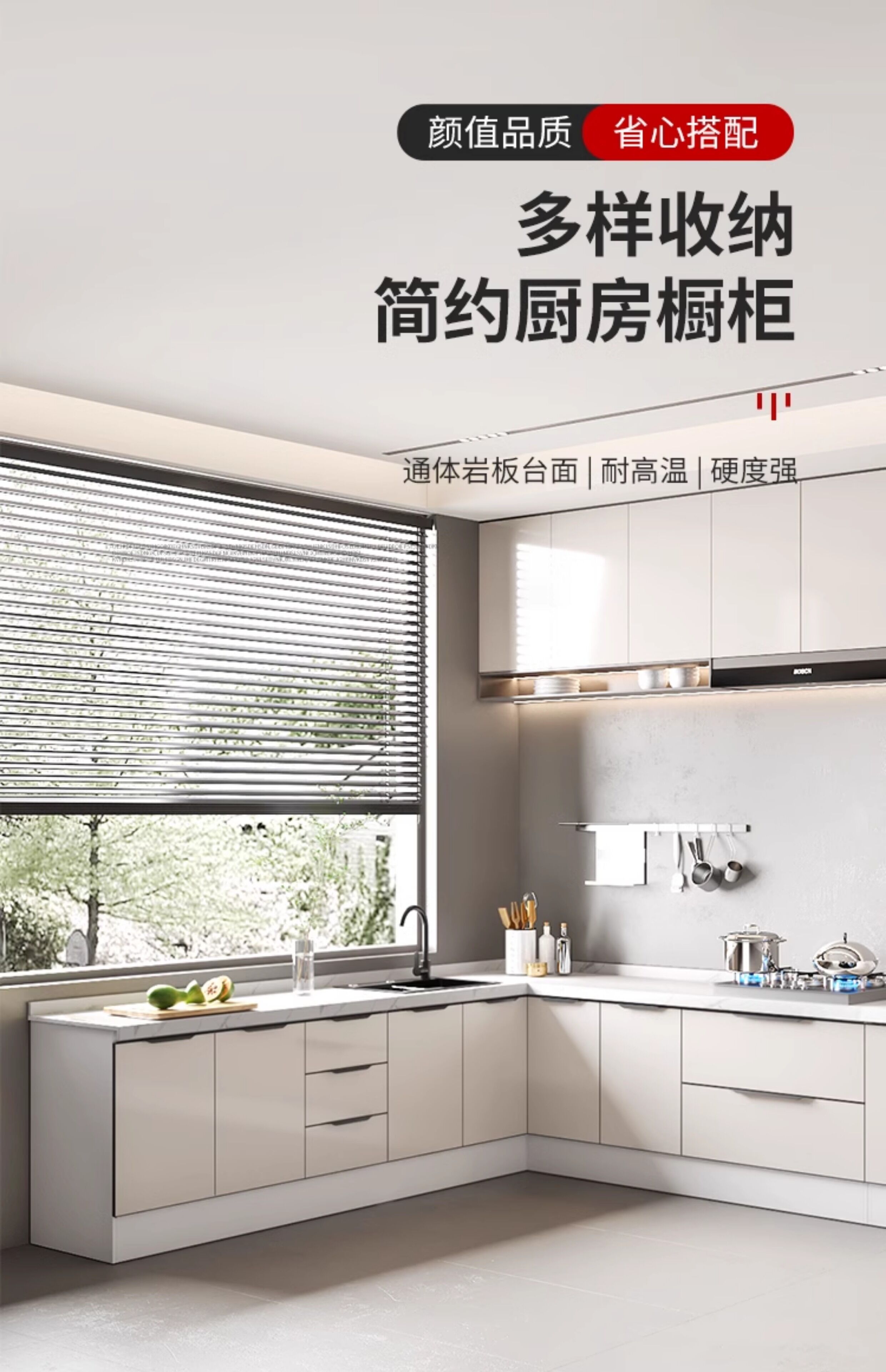 Kezitu customized simple assembly economical marble sink cabinet slate kitchen cabinet stove cabinet rental home one-piece 130CM flat + PET door panel white solid wood cabinet double door