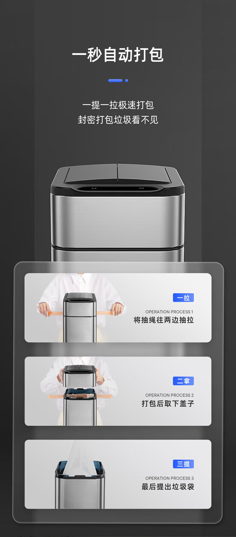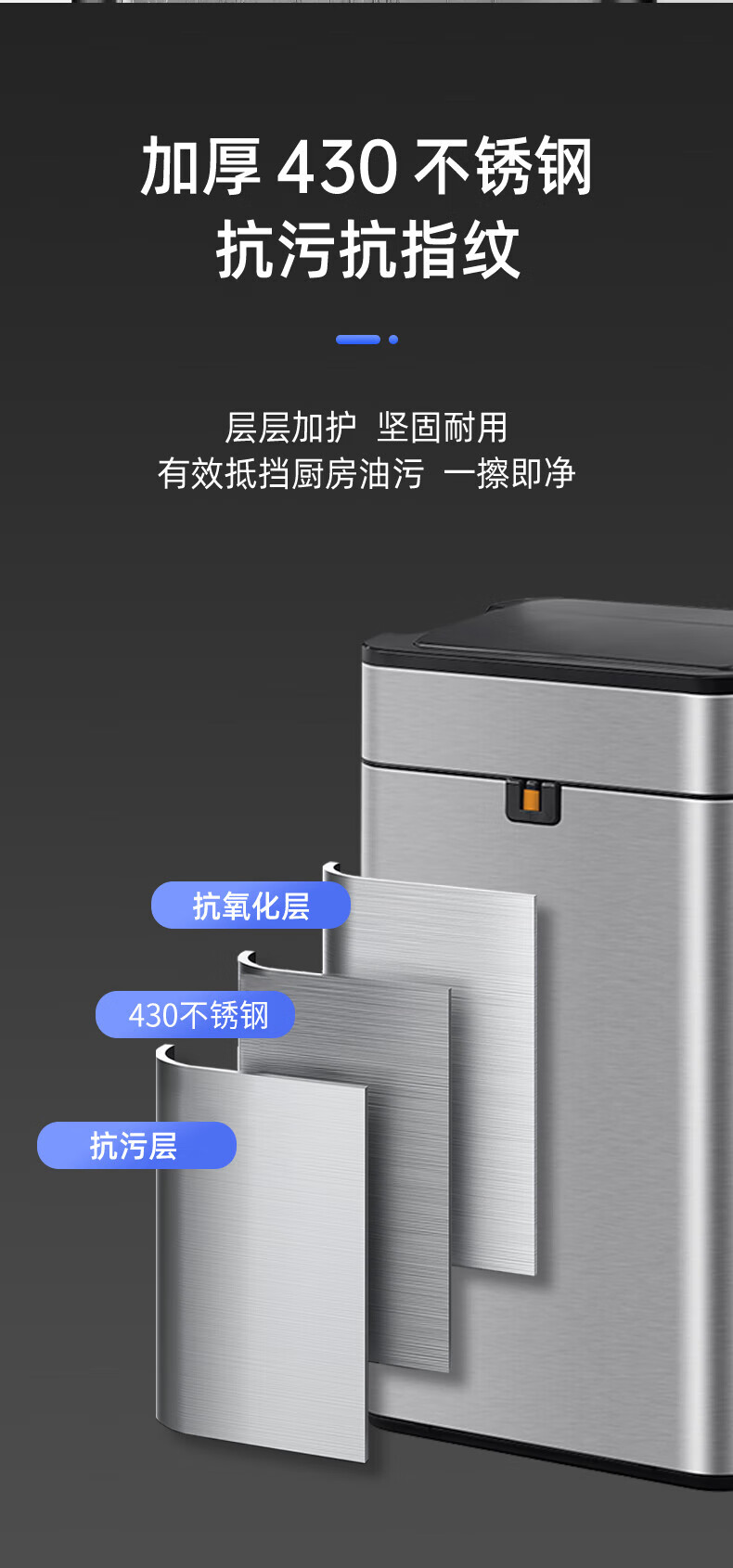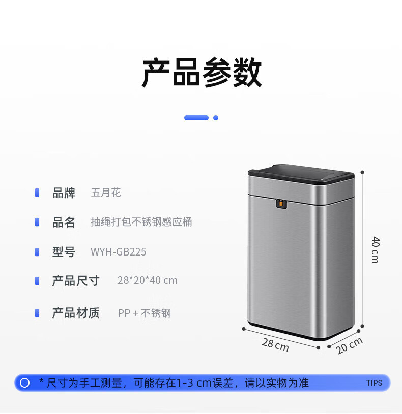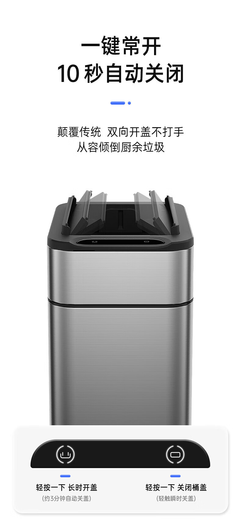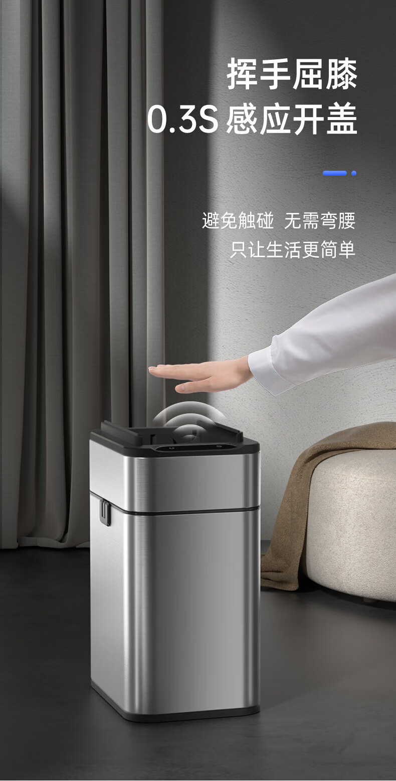 Mayflower smart one-button normally open induction stainless steel trash can large size suitable for kitchen, living room and office 15L