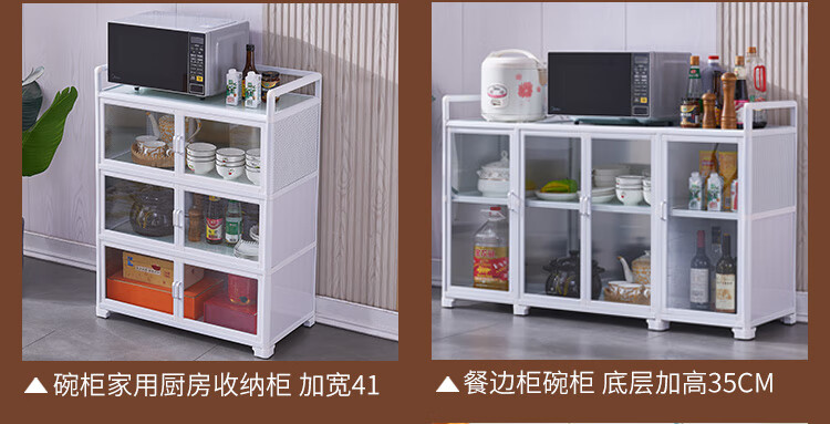 Kezitu customized cupboards, home kitchen cabinets, storage cabinets, aluminum alloy cabinets, tempered glass storage cabinets, simple living room collection, white JY four-layer cabinet length 79, four-layer heightening 35