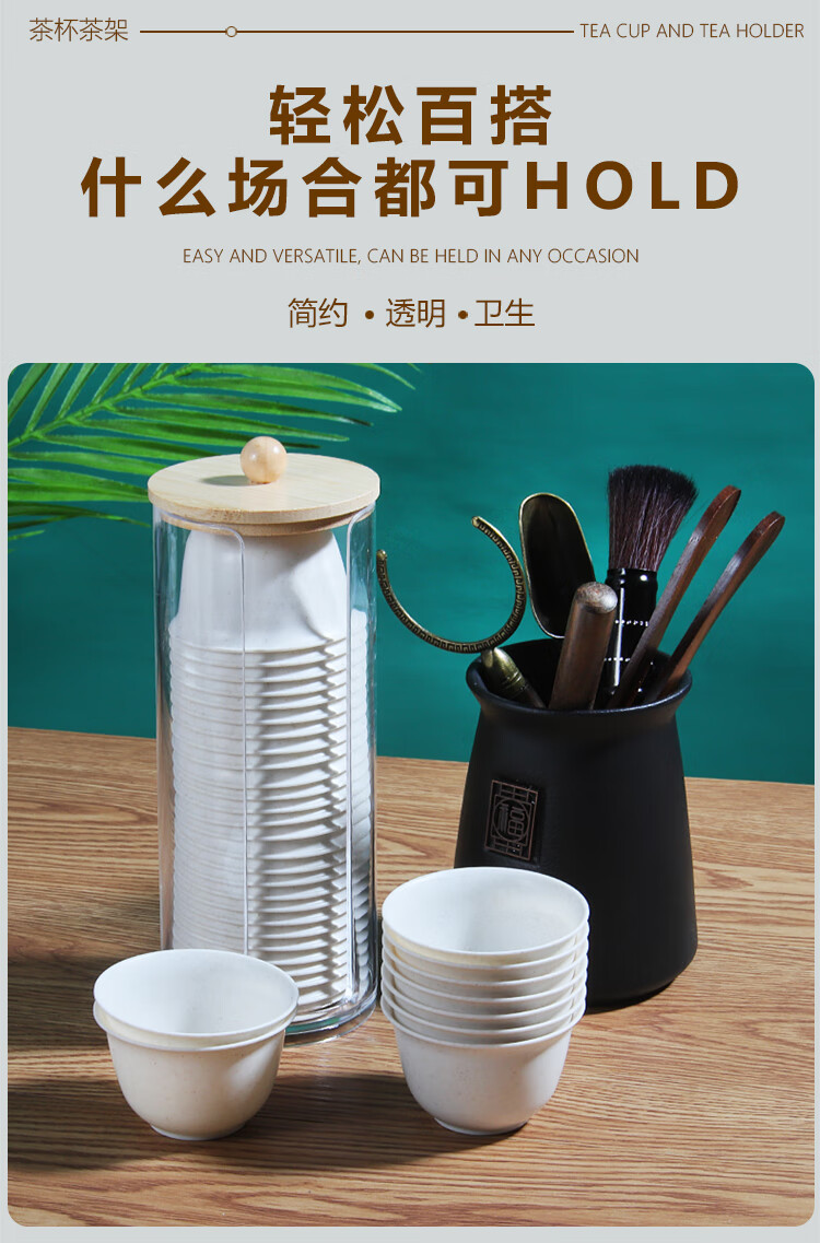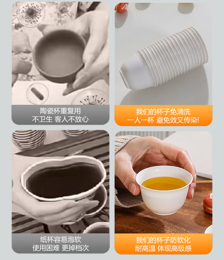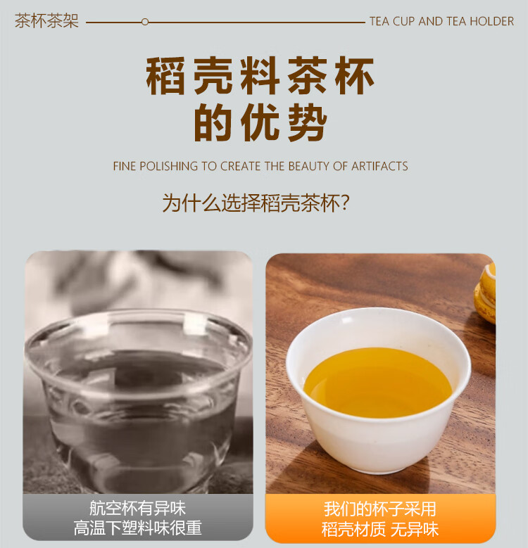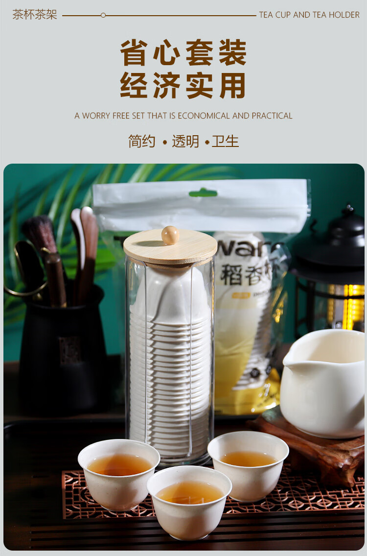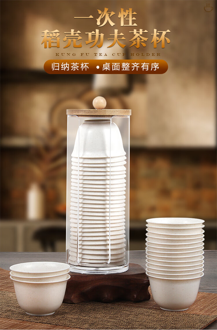 Gata Disposable Tea Cup Rice Husk Kung Fu Tea Cup Thickened Small Cup Home Travel Tea Drinking Portable Tea Set Water Cup 200 Pack + Storage Rack
