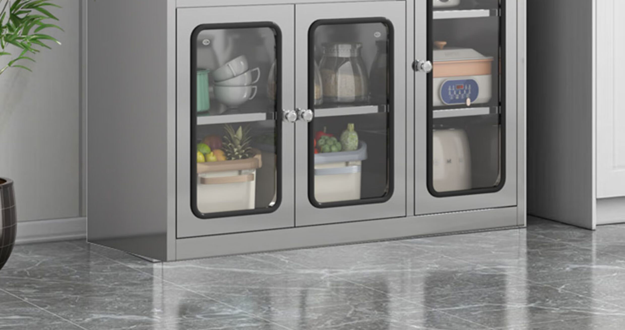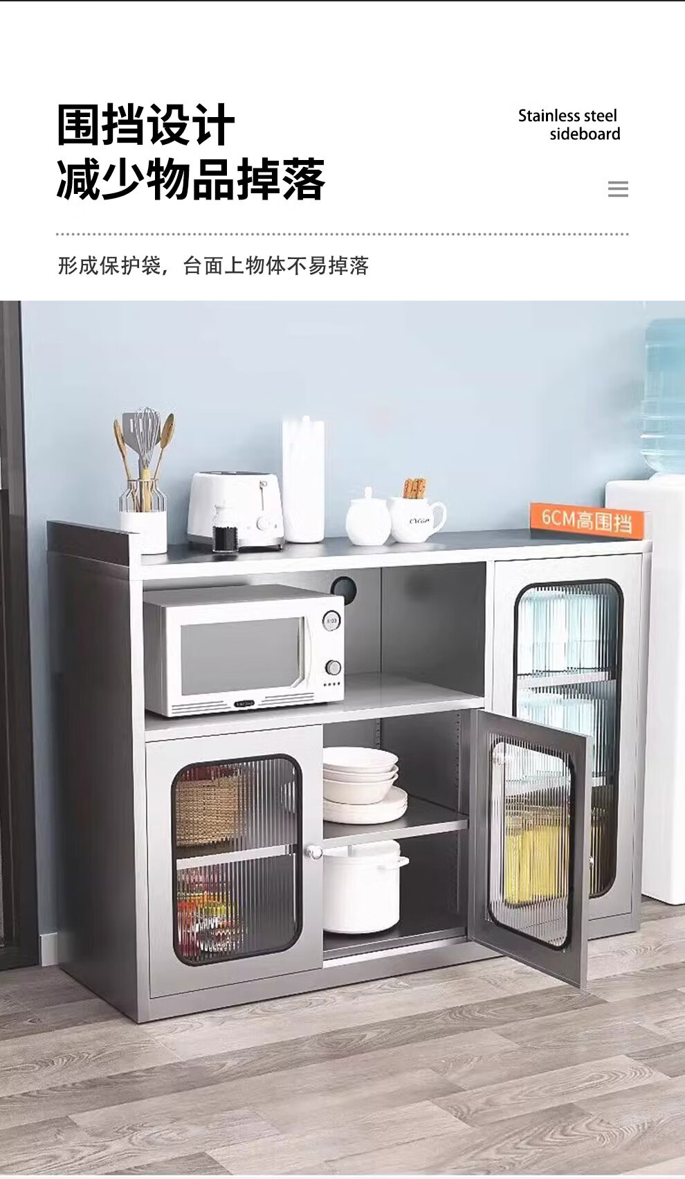 Ling Yuxun customized stainless steel sideboard home cabinet kitchen plate pots and pans storage cabinet multi-functional modern home three doors and one empty - 900 wide - tempered door 201 multi-door
