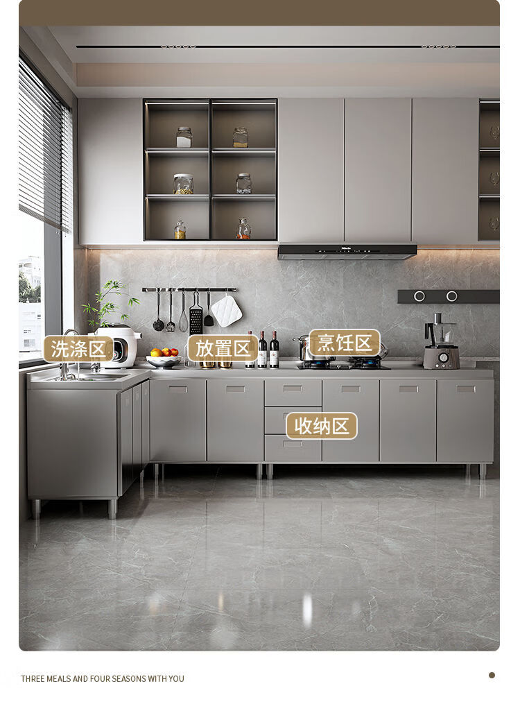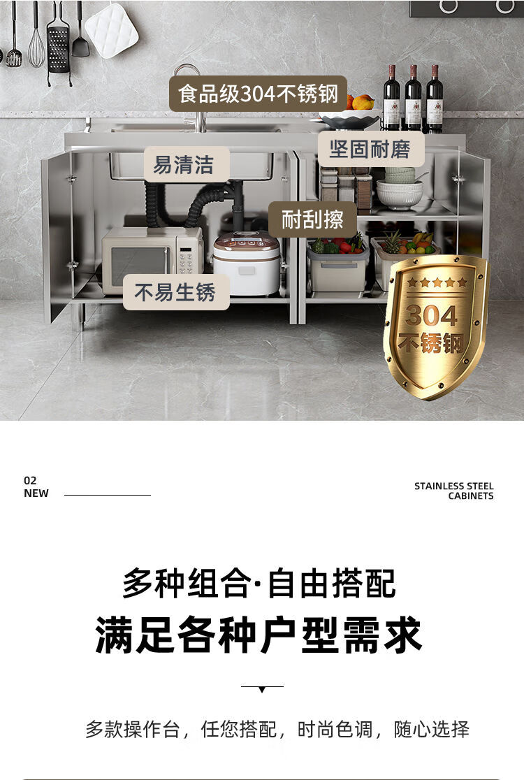 Ling Yuxun customized 304 overall stainless steel kitchen cabinets simple stove integrated storage cupboard household small apartment 304 thickened 120CM stove model