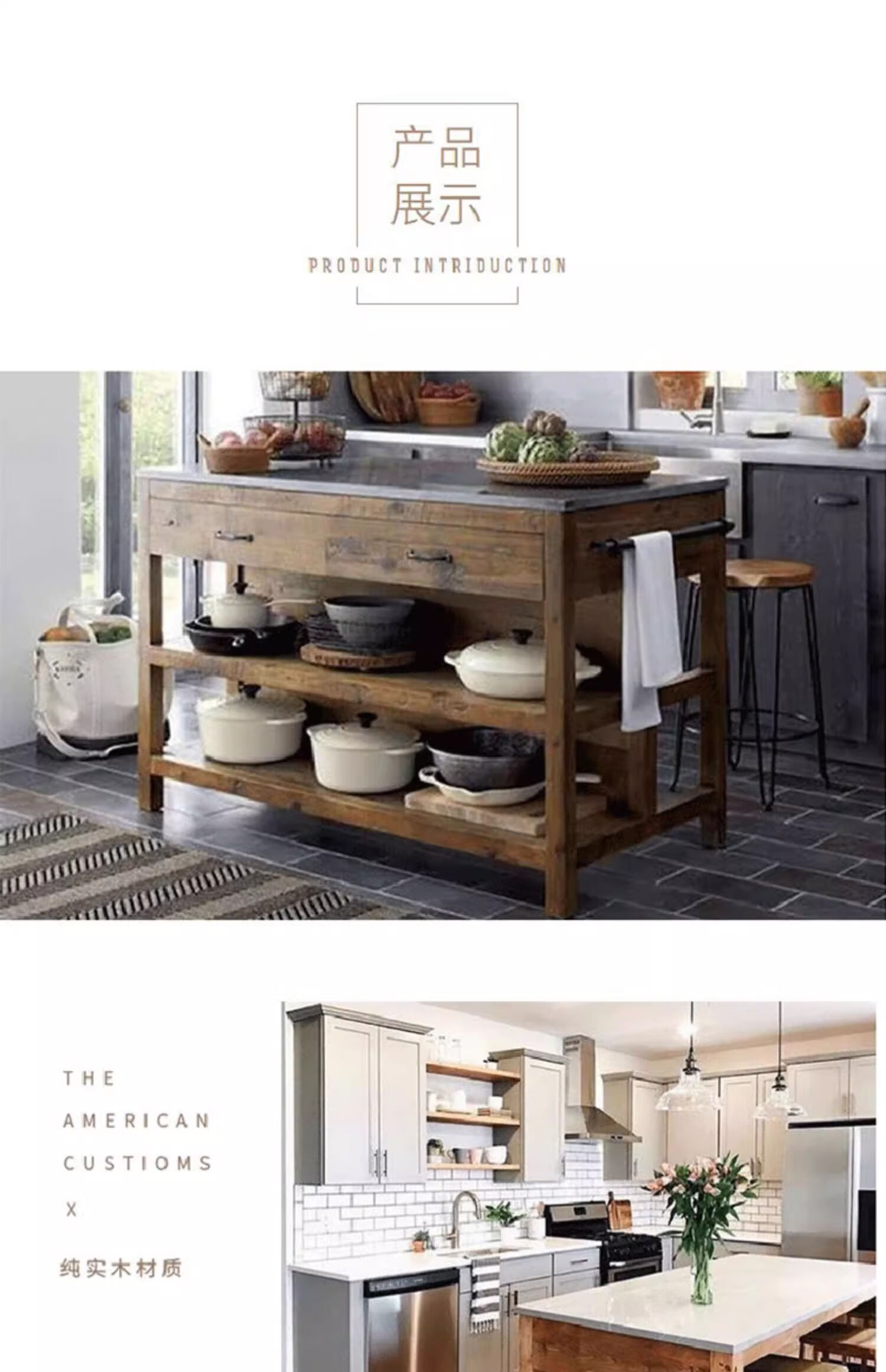 Ling Yuxun customized center island kitchen American solid wood retro storage cabinet mobile narrow sideboard kitchen counter kitchen in operation Solid wood countertop 140*60*85cm 3 drawers without doors