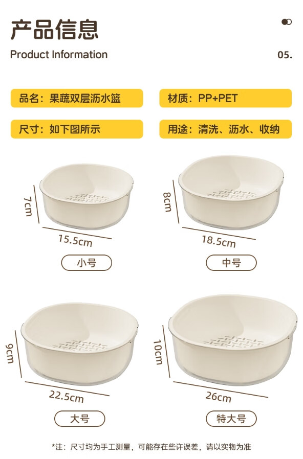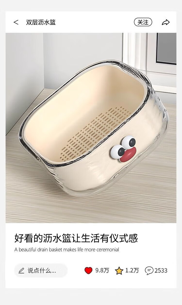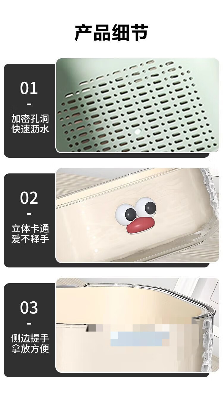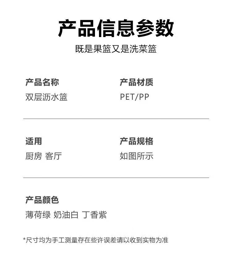 Qianke Kitchen Living Room Double-layer Plastic Drainage Basket Fruit Plate pp Simple Household Rice Basin Mint Green Small Double-layer Drainage 2-piece Set