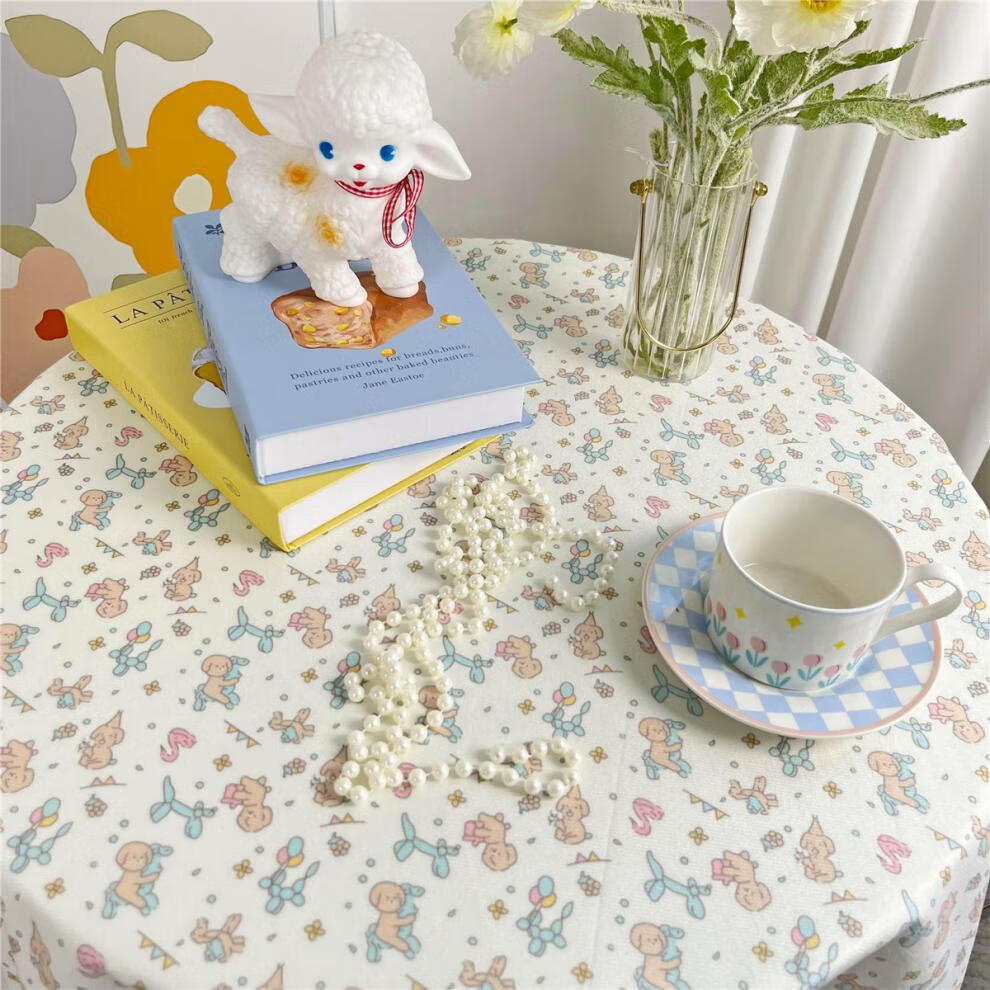 Anjun Shengfeng Floral Plaid Table Cloth Velvet Girly Heart Student Desk Cloth Pad Photo Background Cloth Puppy Party 40*60cm (Small Cover Cloth)