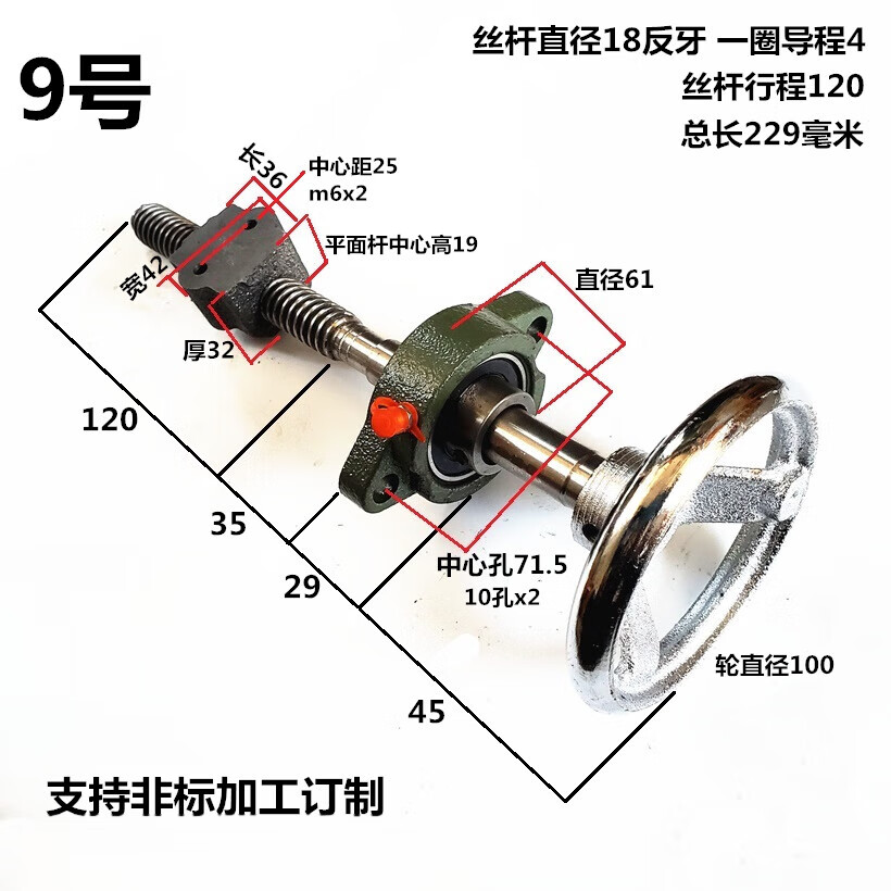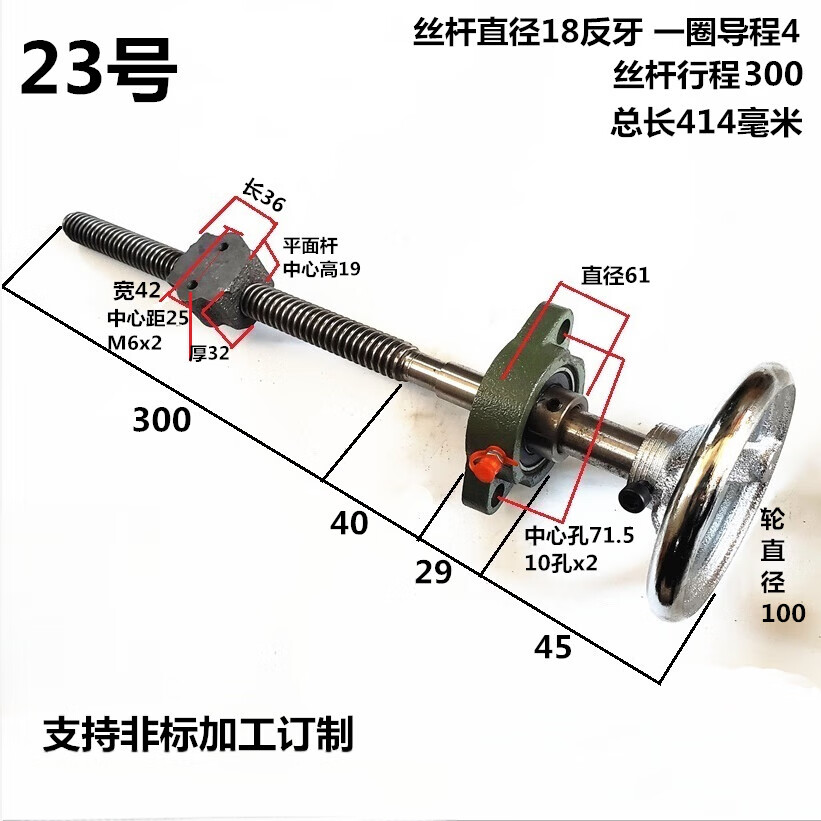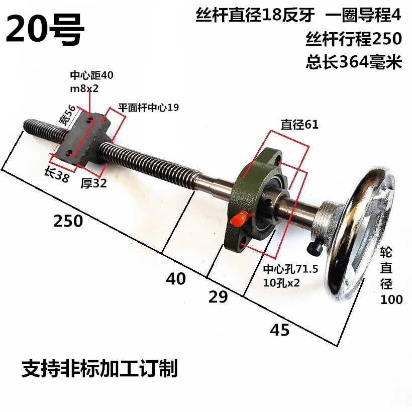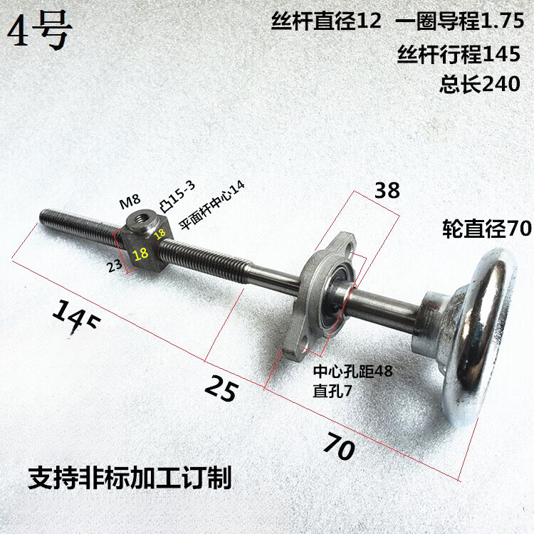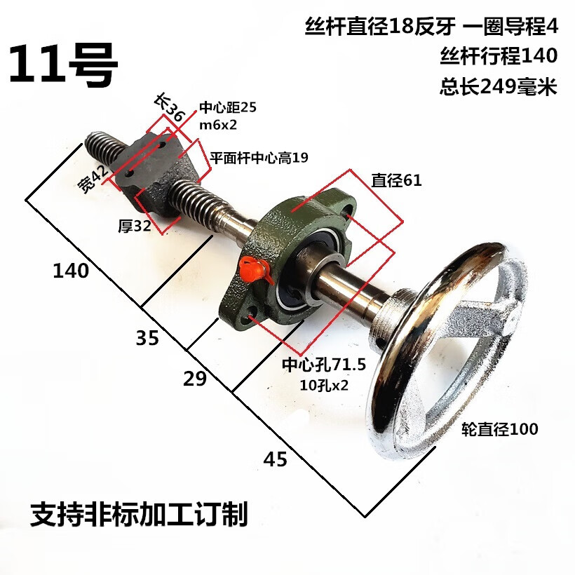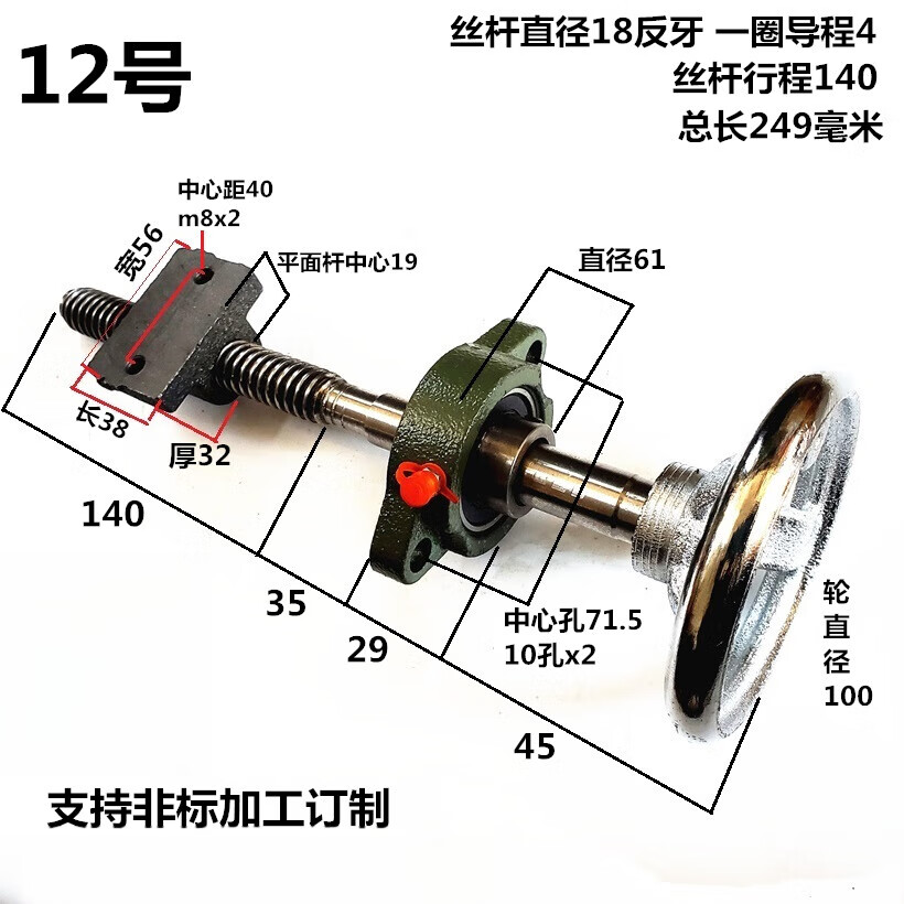 MEXEMINA trapezoidal screw set screw screw trapezoidal buckle screw coarse tooth hand screw clamp T-type screw nut No. 12 length 249 diameter 18 lead 4 stroke 140
